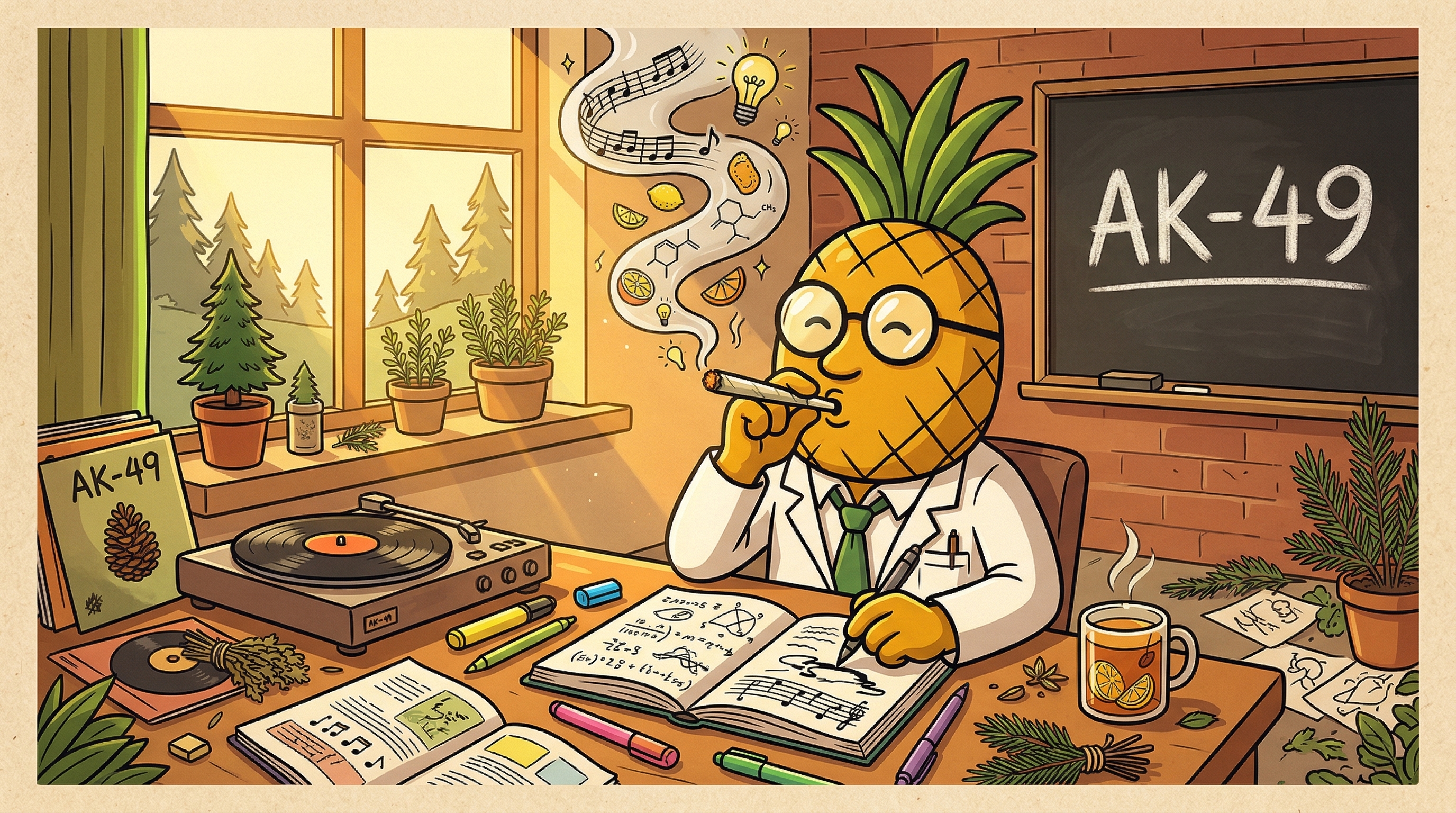 Okay so I just took a solid hit of AK-49 and I want you to understand something — the clarity that just settled in behind my eyes is remarkable. It's not a jarring surge, it's more like someone turned up the resolution on my thoughts. Everything feels sharper, more connected. I'm noticing the caryophyllene doing its thing — there's this warm, grounding baseline that keeps the energy from tipping into anxious territory, which is genuinely impressive for a sativa-forward strain. The limonene is absolutely present — my mood is just... elevated. Not in a giddy way, in a capable way, like the version of myself that actually finishes creative projects. The myrcene is humming underneath it all, keeping the body relaxed without any couch-lock weight. This is the kind of high that makes you want to pick up a notebook, put on a good playlist, and do something meaningful. The AK genetics are unmistakable — complex, multi-layered, never one-dimensional. A genuine daytime companion for curious minds.