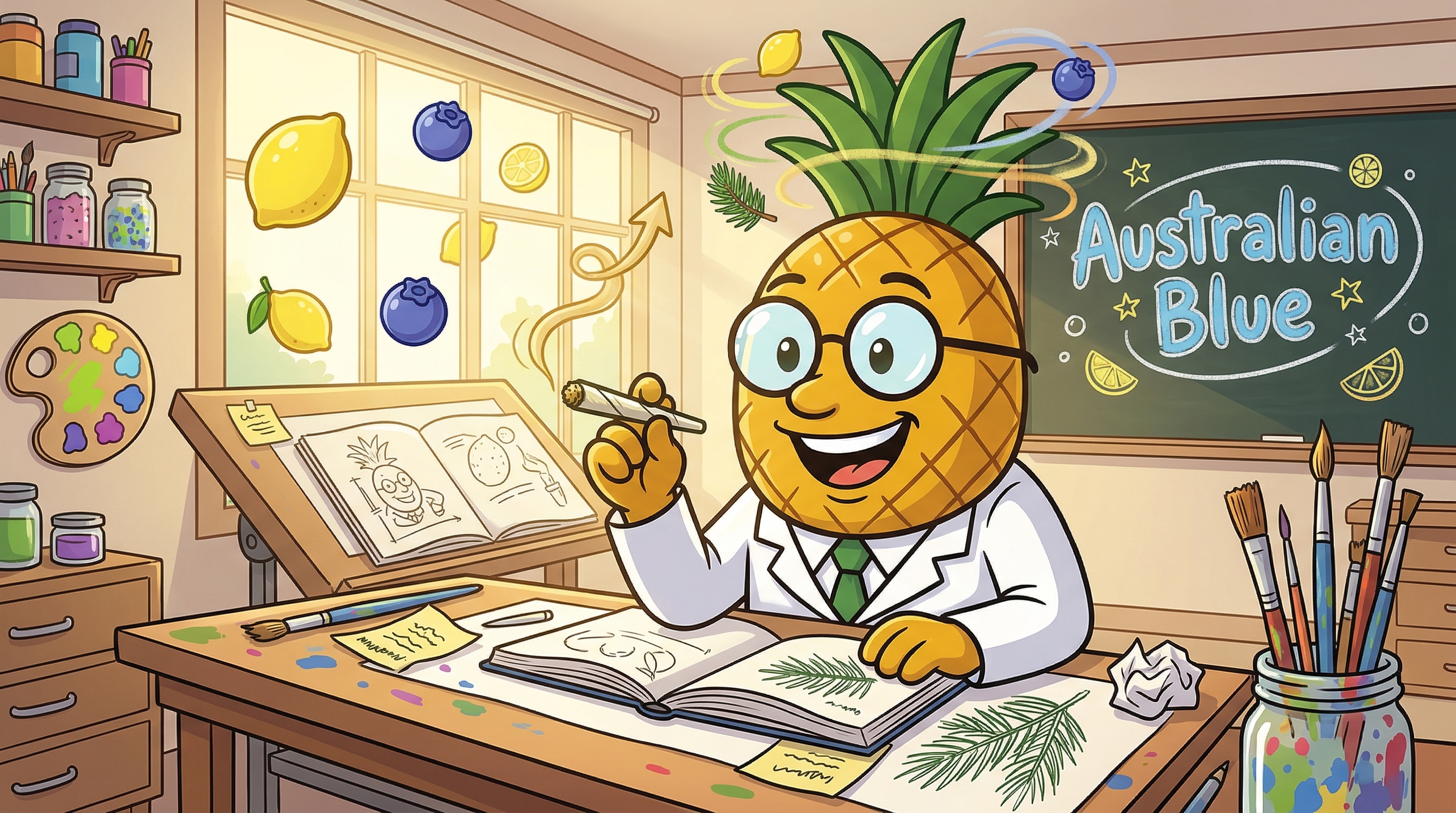 Oh wow — Australian Blue is doing something really interesting to my brain right now. It's like Limonene just filed a flight plan and we are cleared for takeoff. The mental clarity that's washing over me right now is crisp — not scattered, not anxious — just sharp and luminous. I can feel the Australian landrace genetics in this one; there's a raw, untamed energy here that feels almost sun-adapted, like this plant evolved to thrive under intense light and it's sharing that vitality with me right now.
