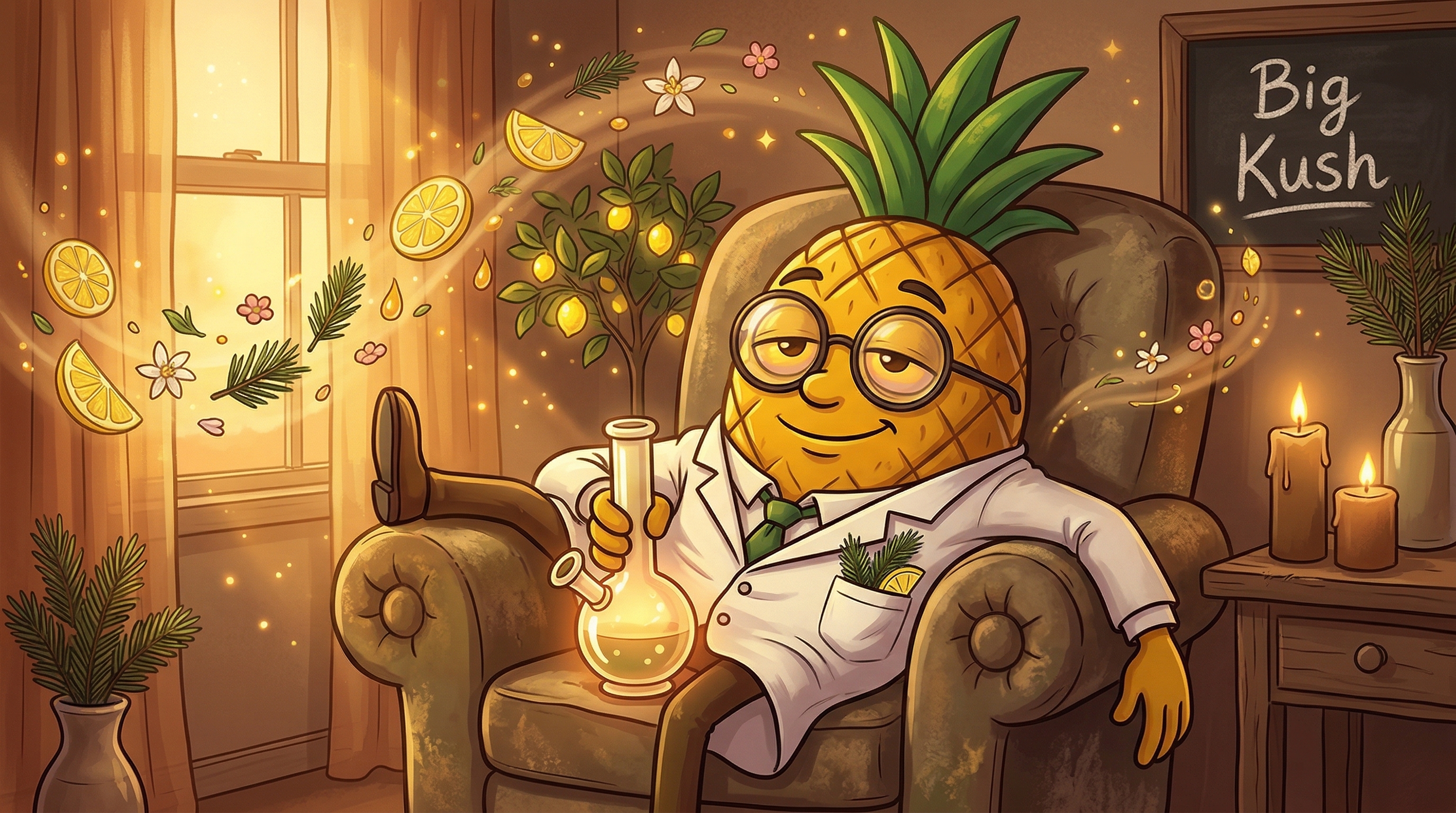 - OG Kush: One of the most iconic strains in cannabis history, contributing its signature fuel-laced citrus aroma, cerebral euphoria, and deeply relaxing body effects