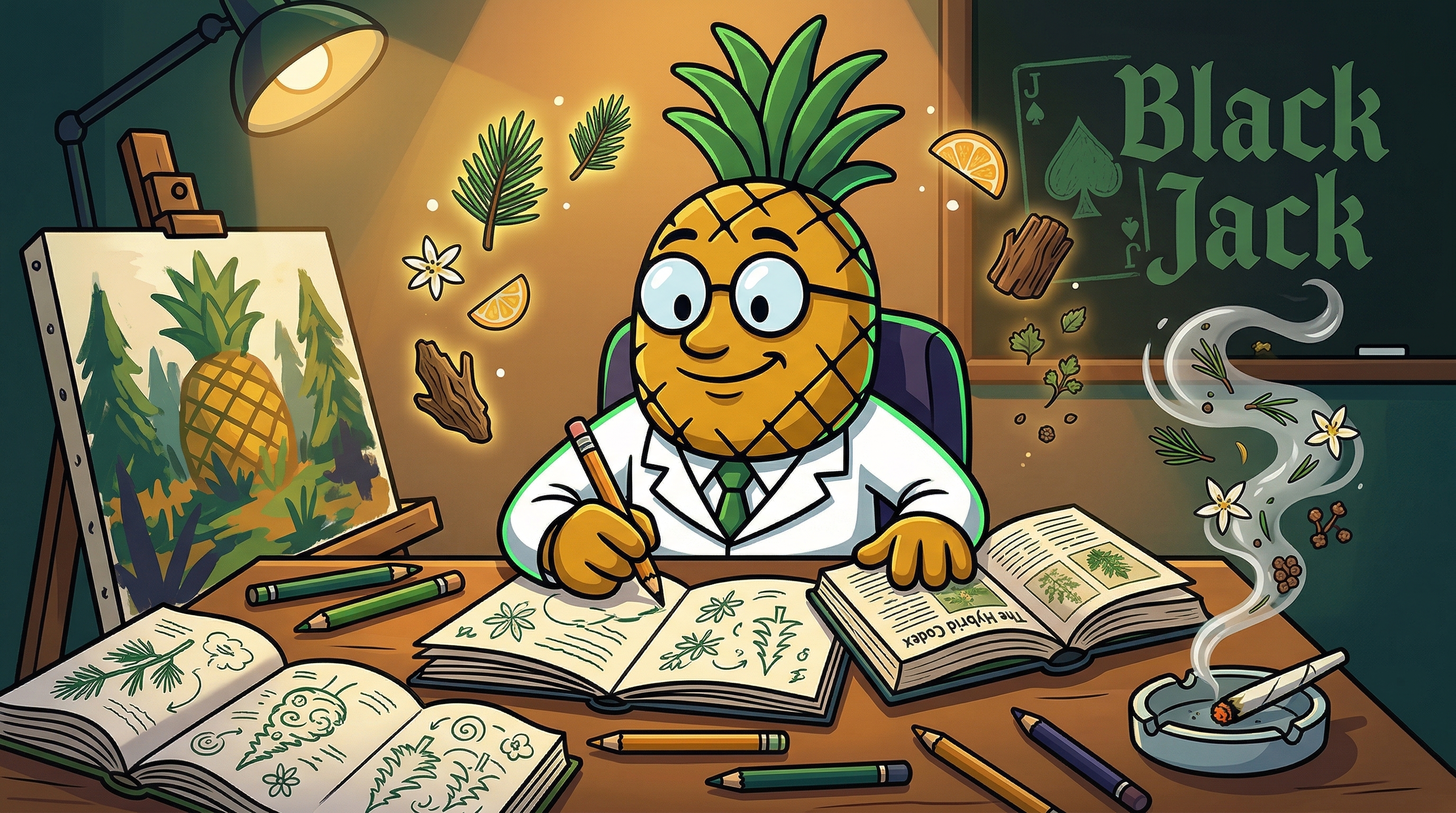 Right, so... the first thing I notice is this crystalline clarity dropping in right behind my eyes — like someone just opened a window in a room I didn't know was stuffy. The Jack Herer side is absolutely announcing itself. There's this buoyant, uplifted mental warmth that feels almost architectural — like my thoughts have scaffolding now, structure, direction. I want to create something or solve something or talk to someone really interesting.