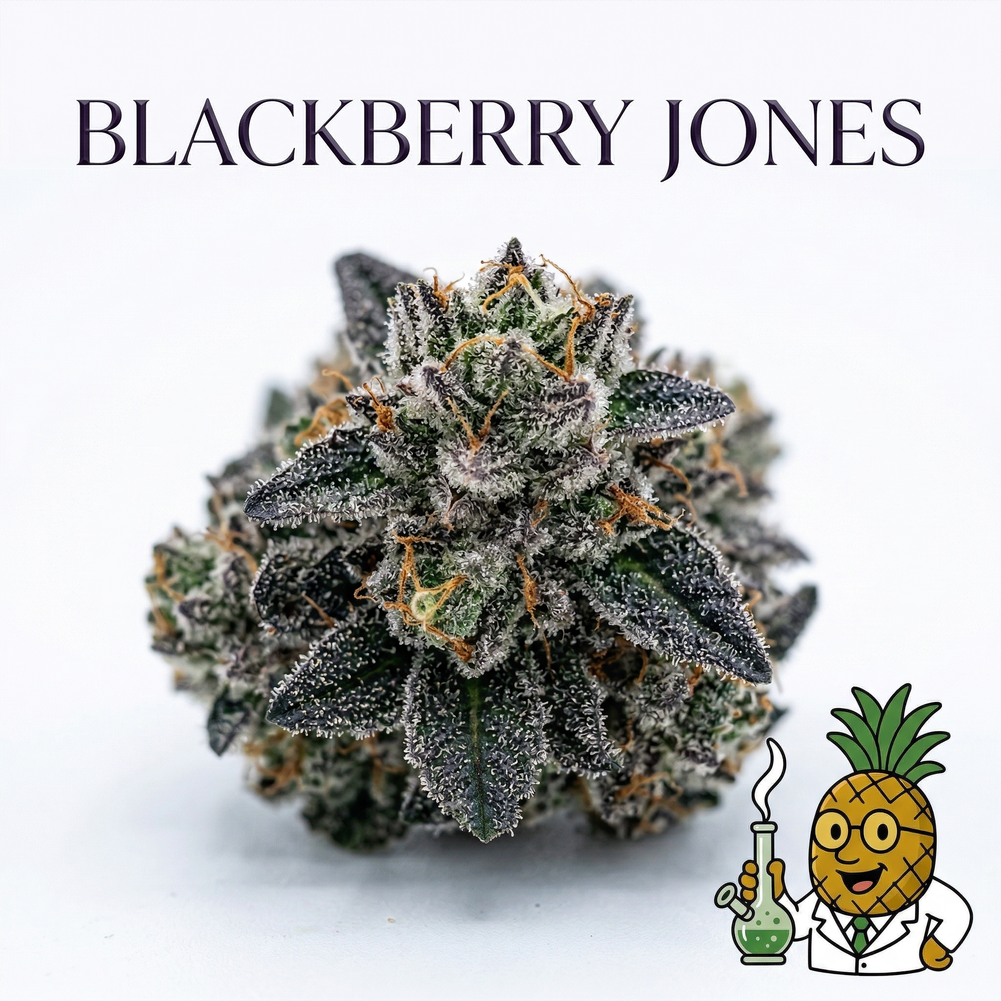 Blackberry Jones buds typically present with rich, deep green coloration accented by purple and violet undertones reflecting its berry genetics. You'll notice fiery orange pistils weaving through dense, moderately compact bud structures. A generous coating of milky trichomes gives the buds a frosted, resinous appearance that signals quality and potency.