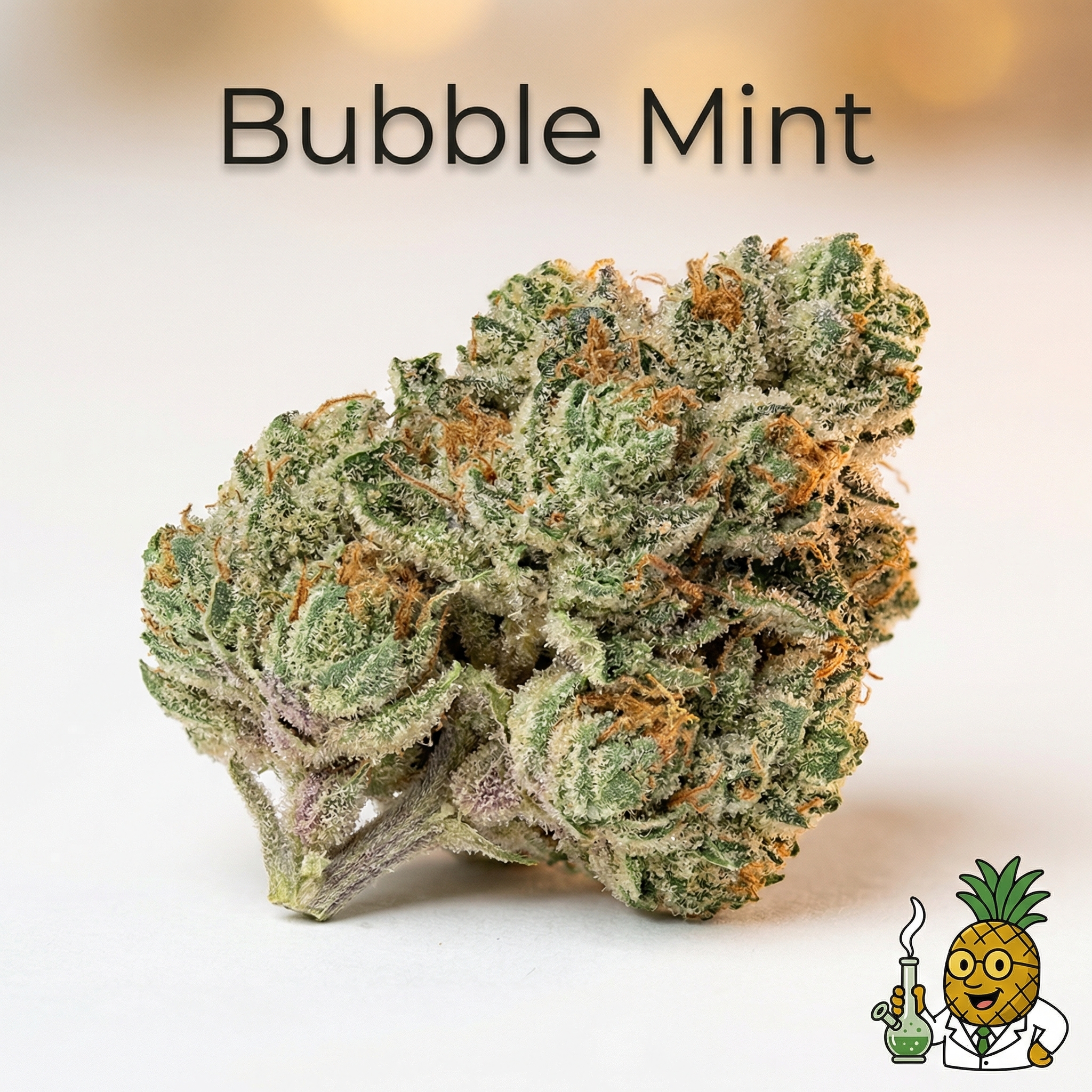 Bubble Mint is an indica-dominant hybrid strain created by crossing Thin Mint Cookies with Indiana Bubblegum, with some sources also indicating Wedding Cake and Wedding Crasher as parent genetics.