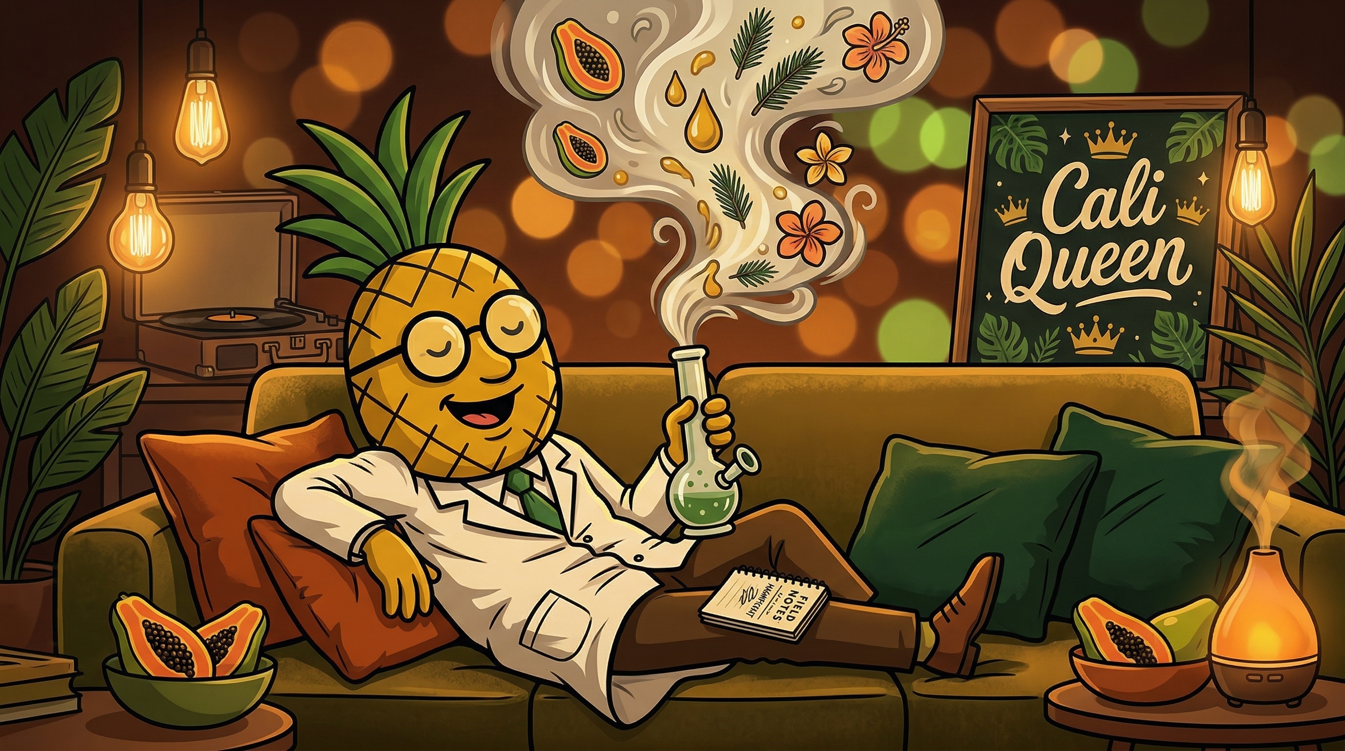 Alright, so I just settled in with some Cali Queen and let me tell you — this strain has a dual personality that is genuinely fascinating from a biochemical standpoint. The initial onset hits like a bright cognitive spark, almost paradoxical for an indica — there's this heady, expansive feeling where thoughts feel suddenly more vivid and connected. Credit goes to the Limonene and Pinene doing their cerebral work before Myrcene steps in as the closer. And then, maybe 20 minutes in, you feel this warm gravitational pull across the shoulders and down the back — like tension you didn't even know you were holding just... releases. The Caryophyllene is clearly engaging those CB2 receptors because this isn't just 'relaxed' — it's targeted, almost therapeutic physical relief. The diesel-papaya flavor combination keeps surprising me on each exhale. This is what well-designed cannabis genetics feel like — layered, purposeful, and deeply satisfying. The Dream Queen ancestry gives it personality; the Papaya lineage gives it weight and depth.