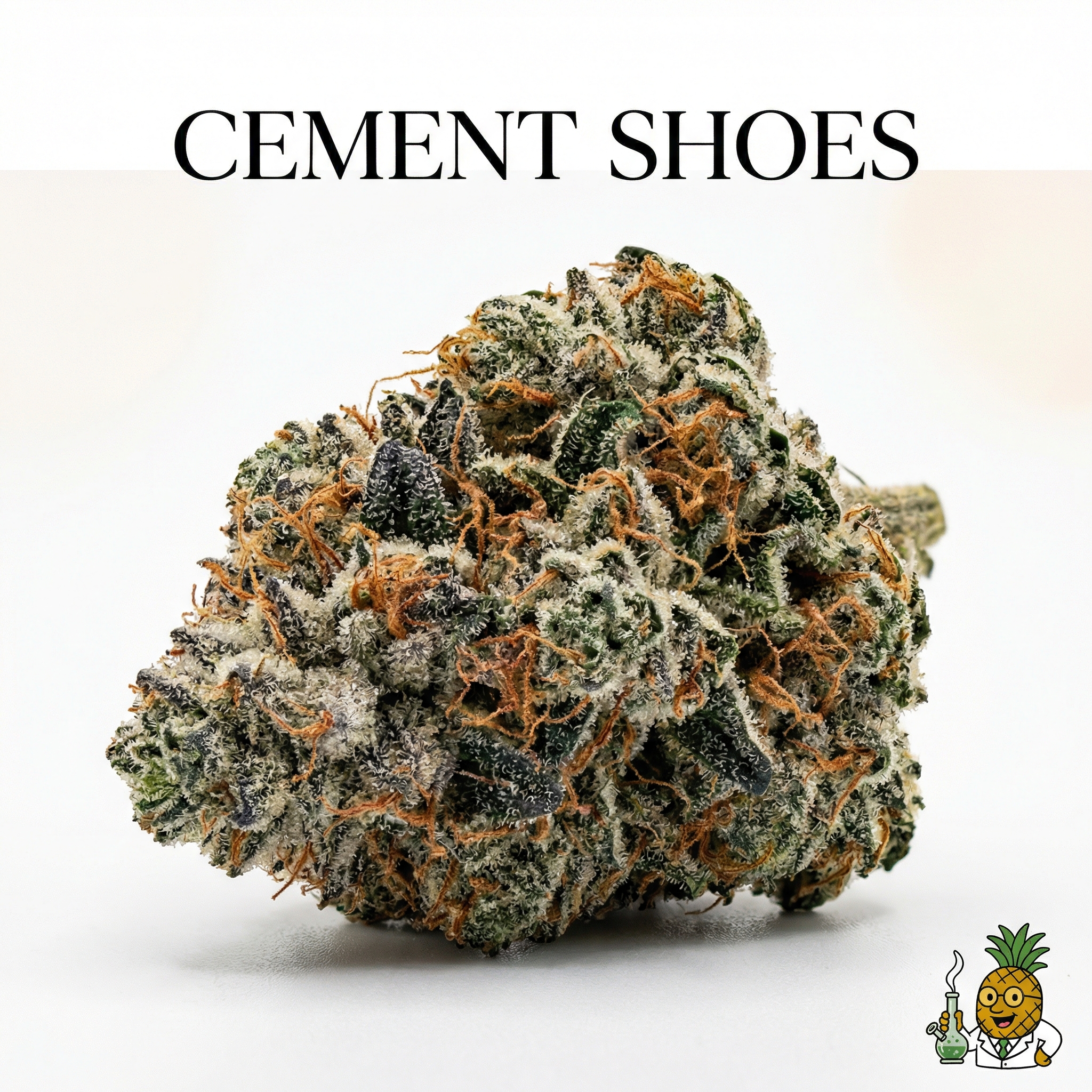 Cement Shoes is an indica-dominant hybrid strain created by crossing Animal Cookies with OG Kush Breath. Some sources also cite parentage from Wet Dreams and OG Kush genetics.