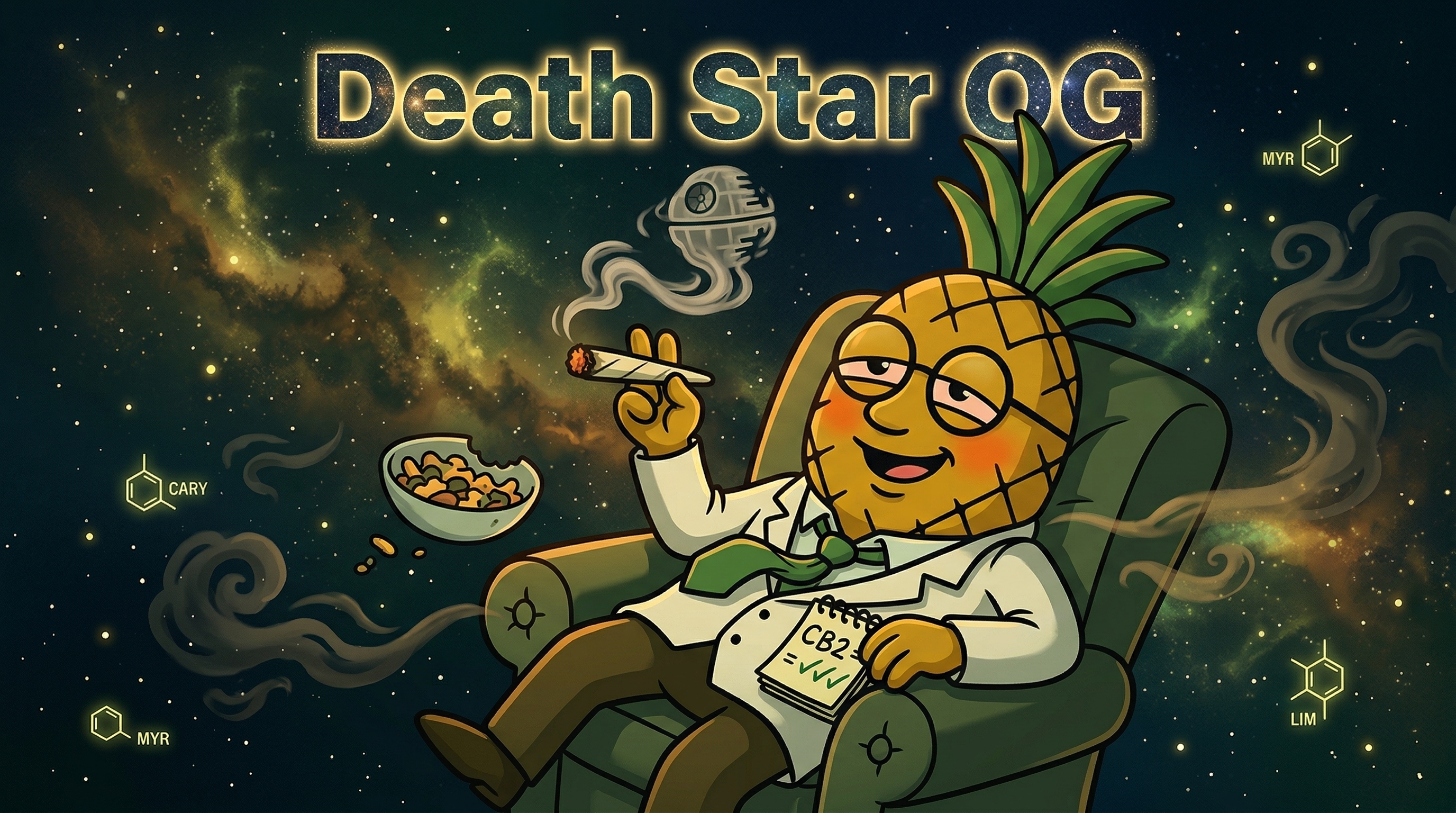 Oh wow. Okay, so I just took a couple hits of Death Star OG and I need to walk you through what's happening right now — because it's genuinely fascinating from a pharmacological standpoint. First, there's this warm cerebral rush — like someone turned a dimmer switch up behind my eyes. It's euphoric but smooth, not jarring. Limonene doing its thing, lifting the mood before the heavy hitters clock in.