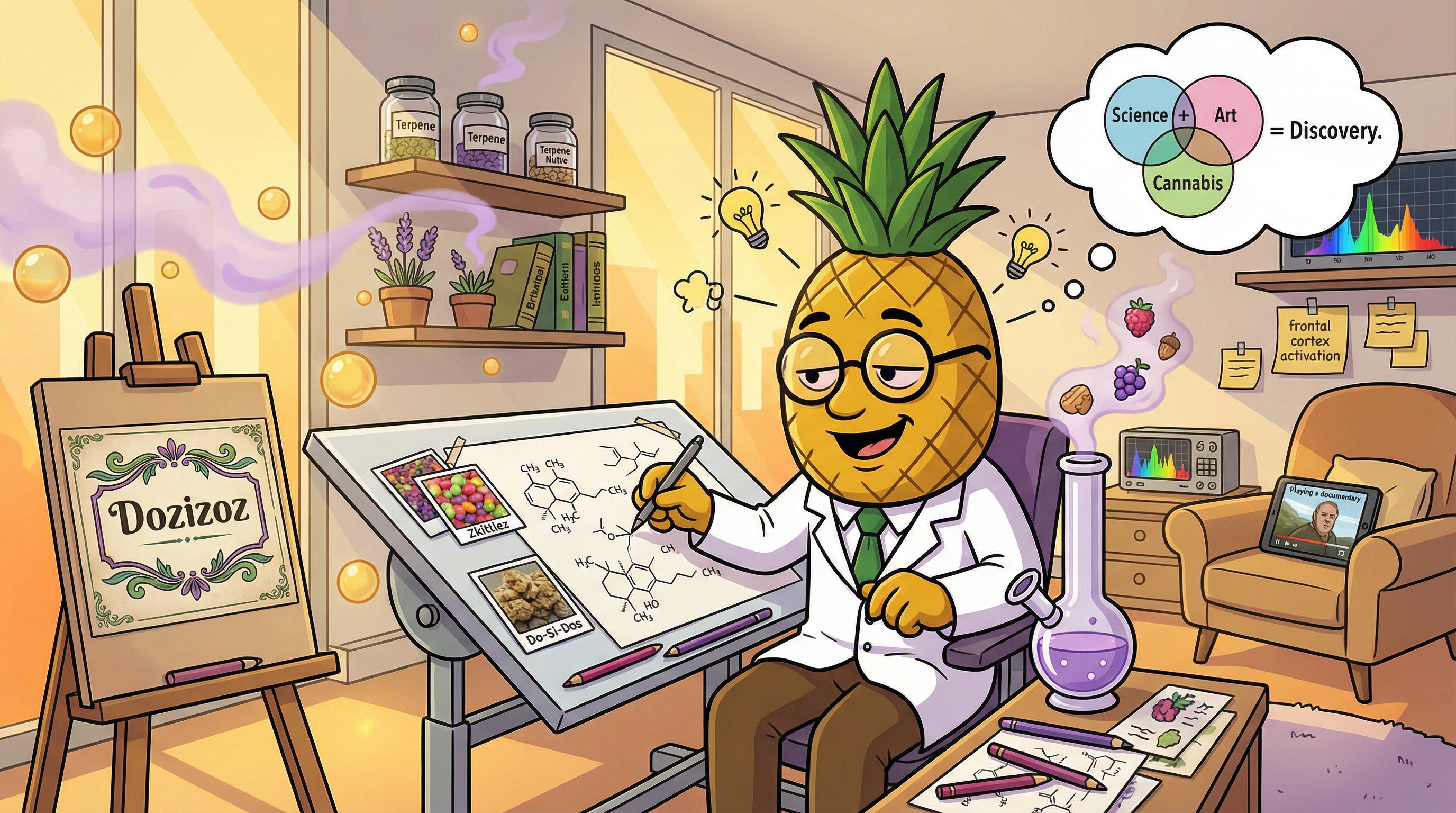 Okay, so I just experienced Dozizoz firsthand, and the terpene interplay here is genuinely fascinating from a neurochemical perspective. The onset hits with this bright, citrusy clarity—that's the Limonene activating serotonergic pathways, creating an immediate mood lift that feels like intellectual sunshine washing over your frontal cortex. Within minutes, I'm noticing enhanced pattern recognition and creative associations firing more readily, ideas connecting in novel ways that make creative work feel effortless and inspired.