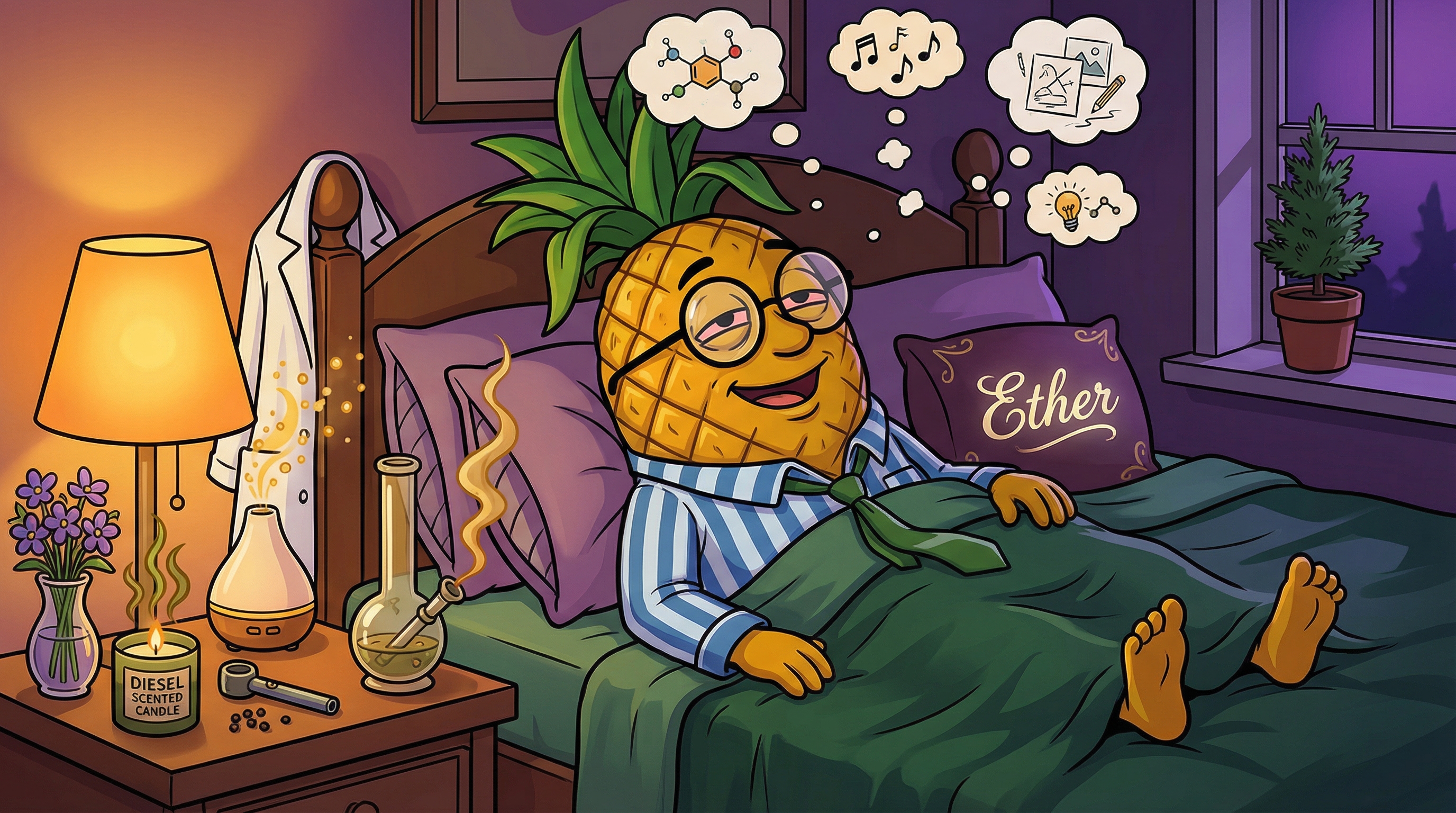 Ether excels in evening relaxation scenarios where you can fully surrender to its sedating embrace. It's perfect for winding down after stressful days, watching movies, or enjoying low-key social gatherings where deep conversation flows naturally. The early creative window makes it suitable for artistic projects or journaling before the heavier effects take hold. As a sleep aid, Ether is exceptional—its combination of mental calm and physical sedation helps quiet racing thoughts while relaxing the body completely. It's also ideal for stress relief and pain management, making evenings more comfortable for those dealing with chronic conditions.