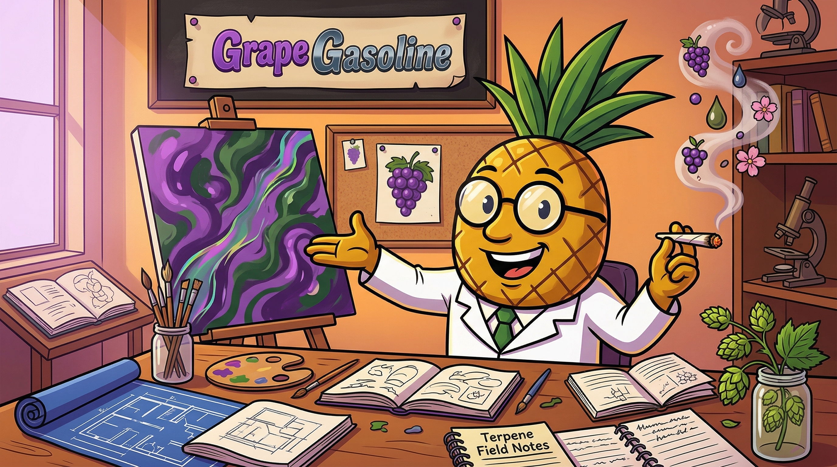 Okay, so I just took a couple hits of Grape Gas and I need to document this properly because it's genuinely fascinating what's happening right now. The myrcene-dominant terpene profile is doing exactly what you'd expect — there's this warm, full-body wave that starts in my shoulders and just... dissolves tension I didn't even know I was carrying. But here's what's interesting: instead of feeling heavy or cloudy, my mind is actually sharpened. I think that's the Limonene and Caryophyllene creating this counterbalancing effect — like the sativa genetics from the Jet Fuel Gelato side are keeping the cognitive engine running while the Grape Pie indica side handles the body.