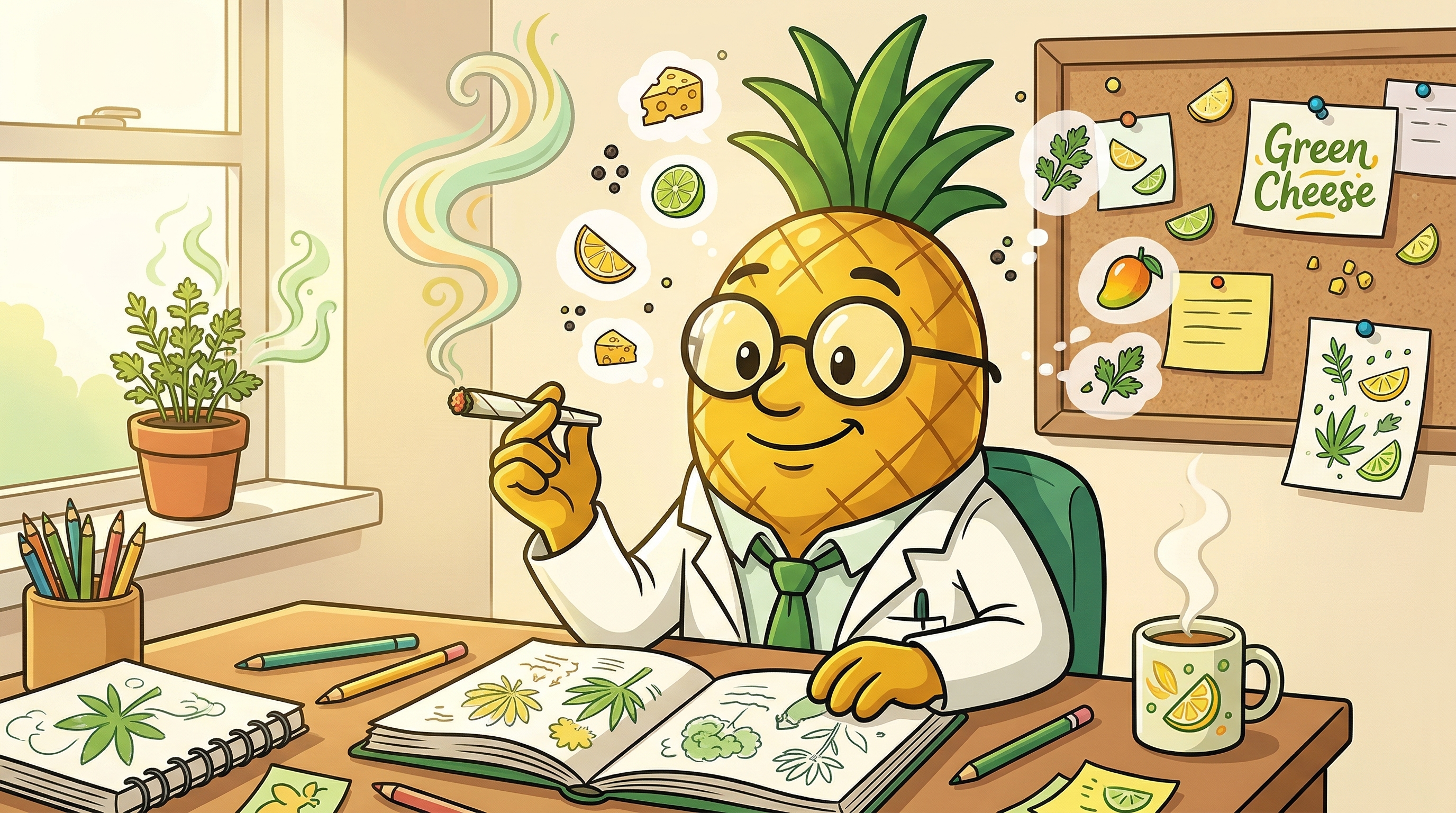 The caryophyllene is doing real work here — I can feel it in the way my body feels less inflamed, less held-together-tight. And that eucalyptol? It's adding this cool, almost minty freshness to the experience — like breathing feels easier and cleaner. The flavor lingers: tangy, creamy, lemon-forward. This strain is genuinely smarter than it looks. It doesn't just get you high — it balances you. I feel like I could write three chapters of something, then take a perfect nap. That's the Green Crack and UK Cheese negotiating beautifully inside me right now.
