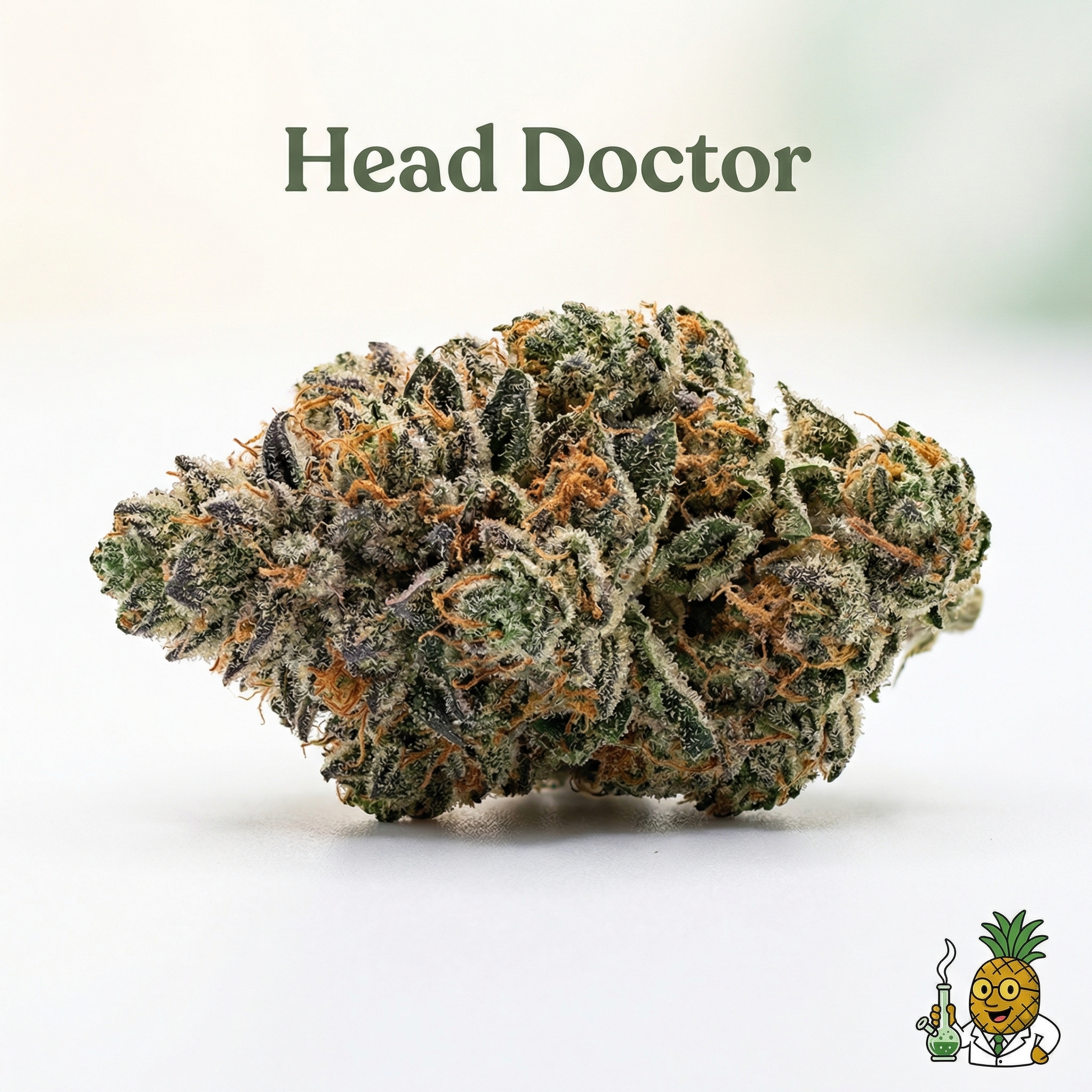 Head Doctor is a sativa-dominant hybrid strain (60% sativa/40% indica) that brings together powerful genetics to create a uniquely balanced experience. Crossing the legendary Headband with the mysterious Dr Who, this strain delivers a cerebral high that lives up to its medicinal namesake. With THC levels ranging from 19-23% and a complex terpene profile dominated by myrcene (0.47%), Head Doctor offers both mental clarity and physical relaxation. Though some sources suggest alternative parentage from Great White Shark and Super Skunk through Green House Seed Company, the most commonly accepted lineage points to the Dr Who x Headband combination. This hybrid has earned its reputation as a therapeutic powerhouse that appeals to both recreational users seeking creative energy and medical patients managing various conditions.