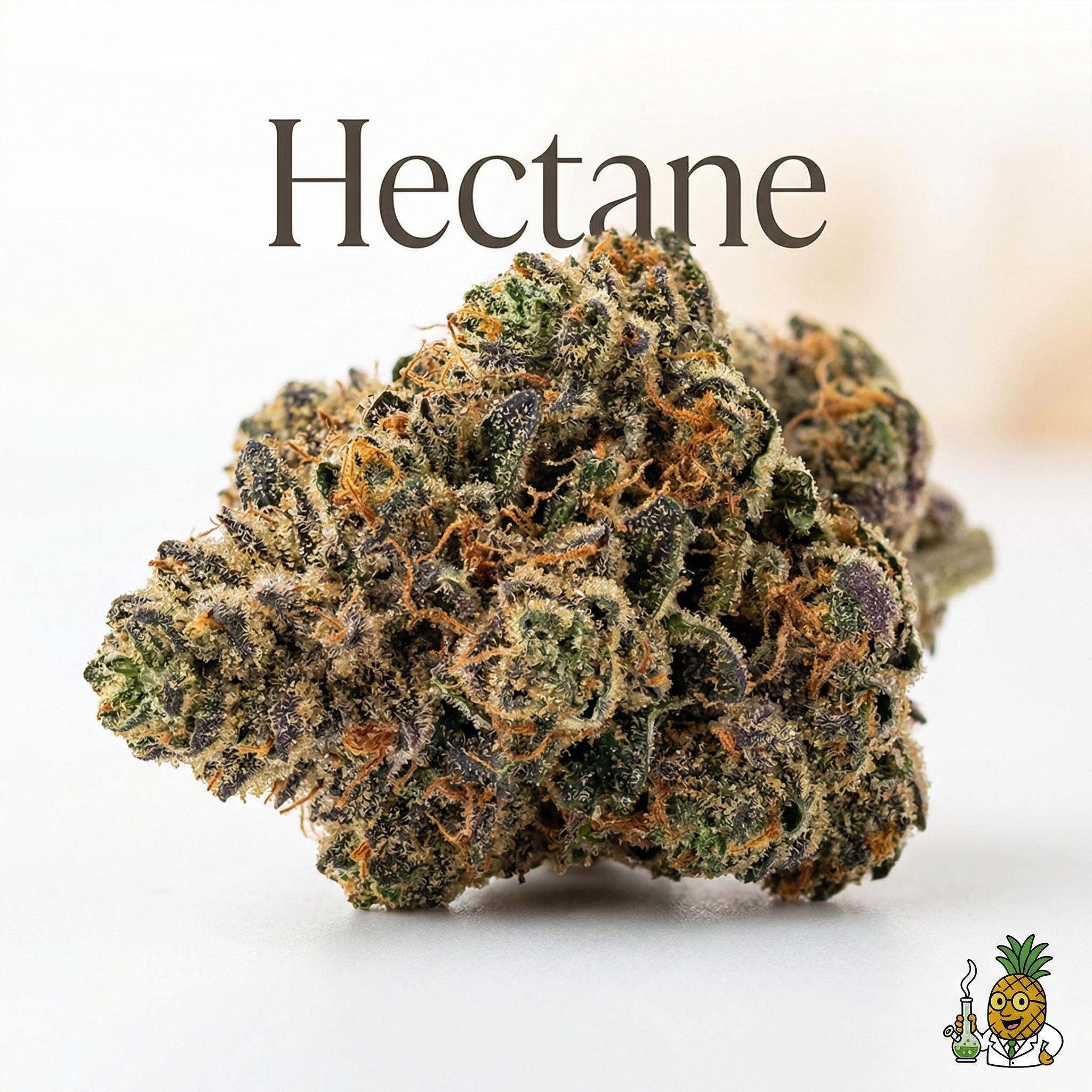 Hectane's buds are visually stunning—dense, resinous nuggets covered in a thick layer of trichomes that give them a frosted, crystalline appearance. The primary colors range from deep forest green to purple undertones, while fiery orange pistils curl throughout. The trichome density is typically very high, creating a sticky, premium-quality appearance that reflects the strain's exceptional potency.