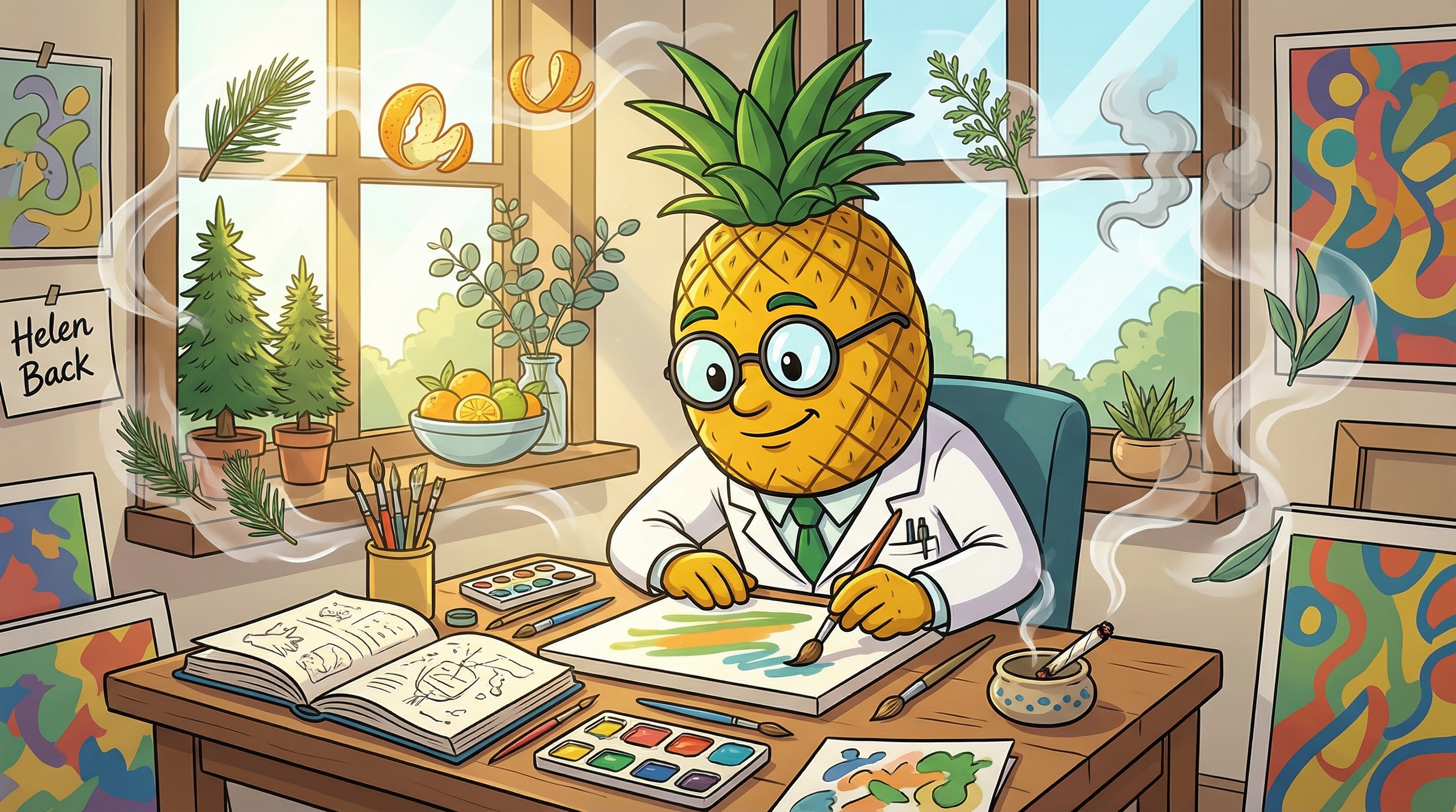 The pine terpenes are doing something really special here too—it's like breathing in forest air, which naturally triggers that alert-yet-calm state we associate with nature immersion. Adjusting my pineapple-shaped glasses The creativity boost is real and sustained, not scattered. This is what we call a functional high—you're definitely elevated, definitely feeling those endocannabinoid receptors lighting up with activity, but you're still here, still capable, still engaged with the world around you. It's morning sunshine in botanical form, and I'm absolutely here for this experience.