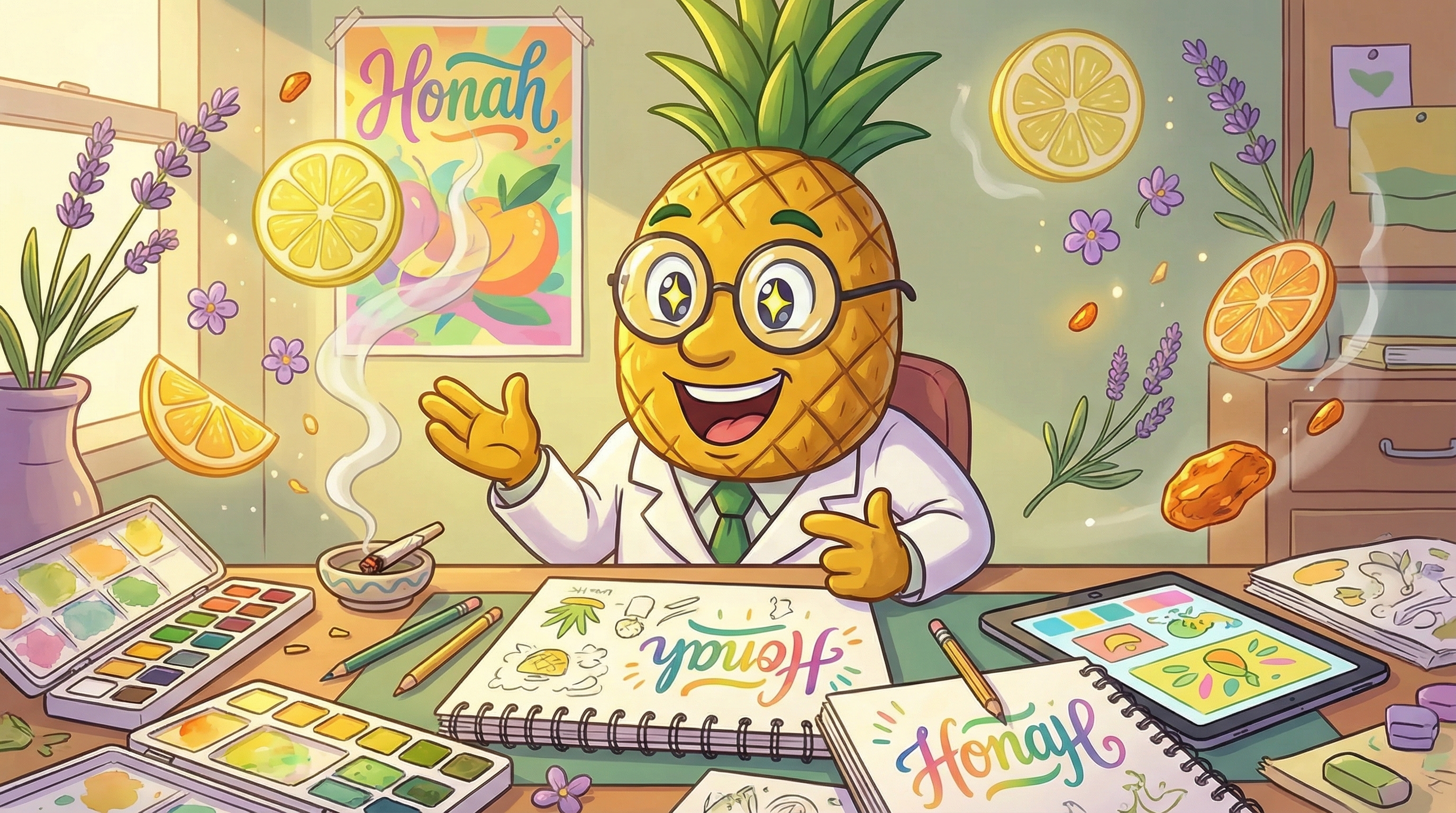 The moment Honah's smoke fills my lungs, I feel this electric clarity washing over my mind—like someone just turned up the brightness and saturation on my thoughts. There's this delightful tropical sweetness dancing across my palate, reminding me of fresh pineapple juice with herbaceous notes, and then... boom—the euphoria hits.