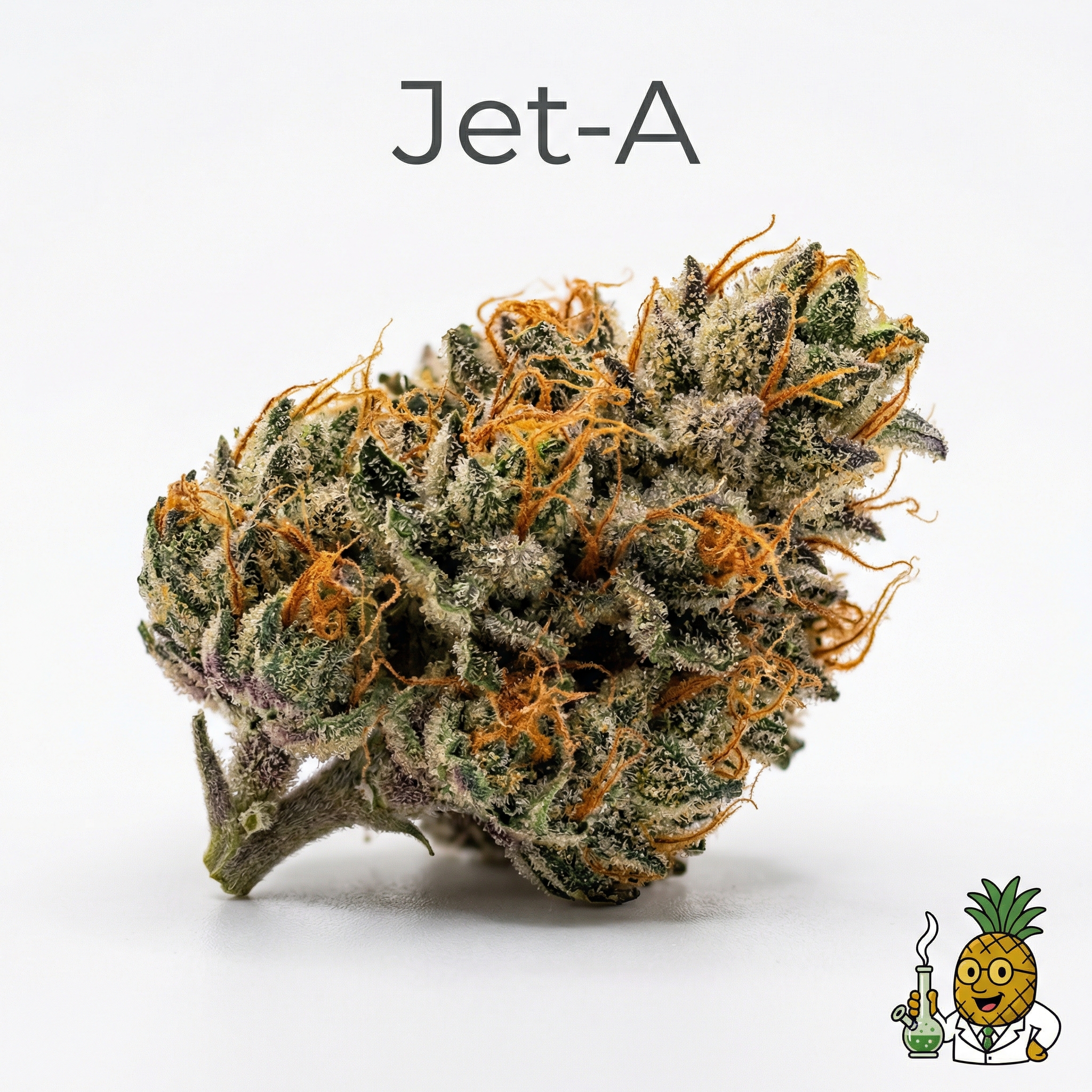 Jet-A is a hybrid strain with primary lineage from Gelato #33 and Tina, though some sources indicate it may also derive from Jet Fuel and Good Dawg genetics.