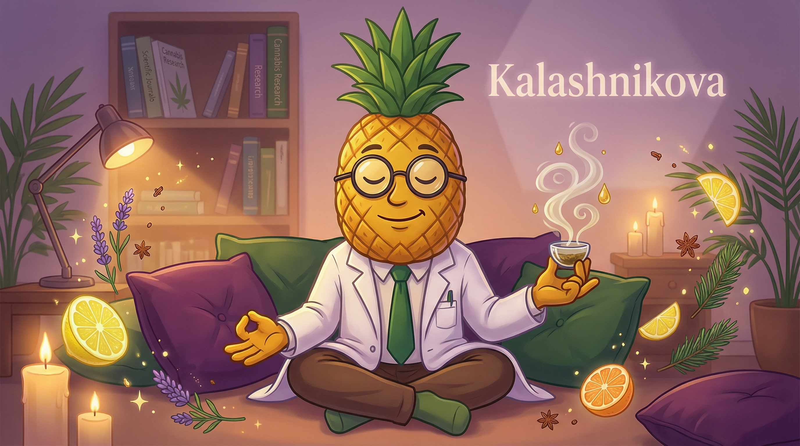 Kalashnikova's aromatic signature is defined by a rich myrcene-dominant terpene profile, complemented by significant amounts of beta-caryophyllene and linalool. This terpene trio creates a complex sensory experience that begins with herbal and musky base notes, transitions through sweet citrus and lemon middle notes, and finishes with spicy, earthy undertones. The myrcene content contributes to the strain's sedating properties, while caryophyllene adds peppery spice and anti-inflammatory potential. Linalool rounds out the profile with subtle floral lavender hints that promote calming effects. You'll notice the aroma intensifies as you break apart the dense buds, releasing waves of fresh lemony citrus mixed with tropical mango and sandalwood musk.