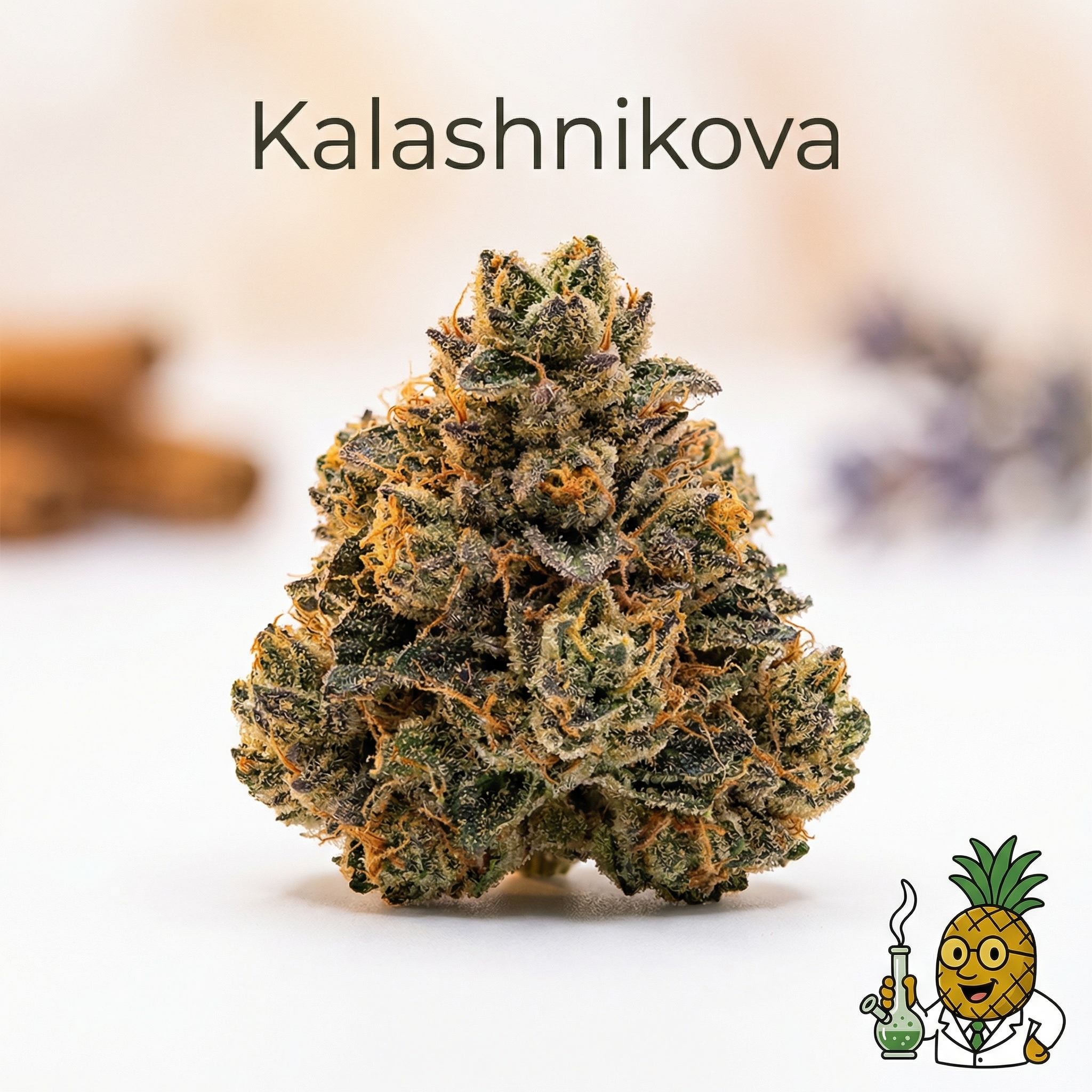 Kalashnikova is a potent indica-dominant hybrid (80/20) from Green House Seeds, crossing AK-47 with White Widow. With THC levels reaching 21.5%, this strain delivers powerful relaxation paired with mental clarity. Expect complex flavors of lemon, herbal musk, and sweet spice, backed by a myrcene-rich terpene profile. The effects combine euphoric creativity with deep physical calm, making it ideal for stress relief, pain management, and evening relaxation without complete sedation.