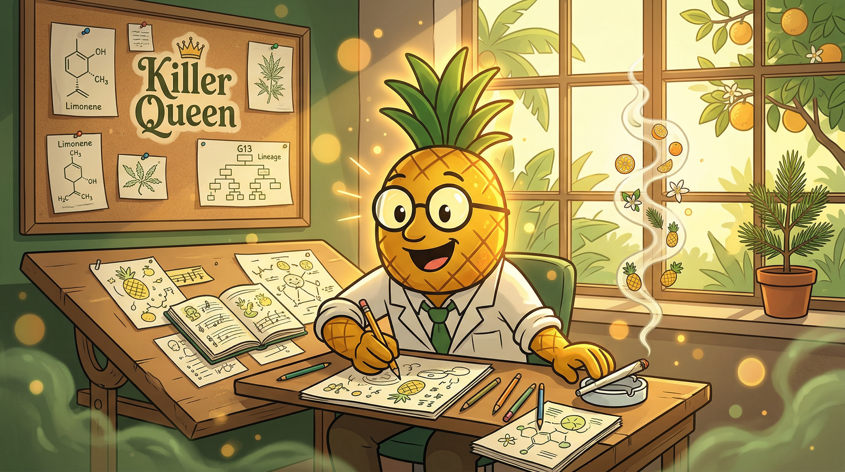 The flavor journey of Killer Queen is as regal as its name suggests. On the initial inhale, you'll be greeted with a wave of sweet citrus and tropical fruit — notes of pineapple, orange, and fresh lime. The mid-palate reveals herbal complexity with a hint of pine and light floral sweetness. The exhale delivers a pleasantly spiced, earthy finish that lingers without being overwhelming. Some phenotypes express a subtle creamy or buttery undertone that smooths out the entire experience beautifully.
