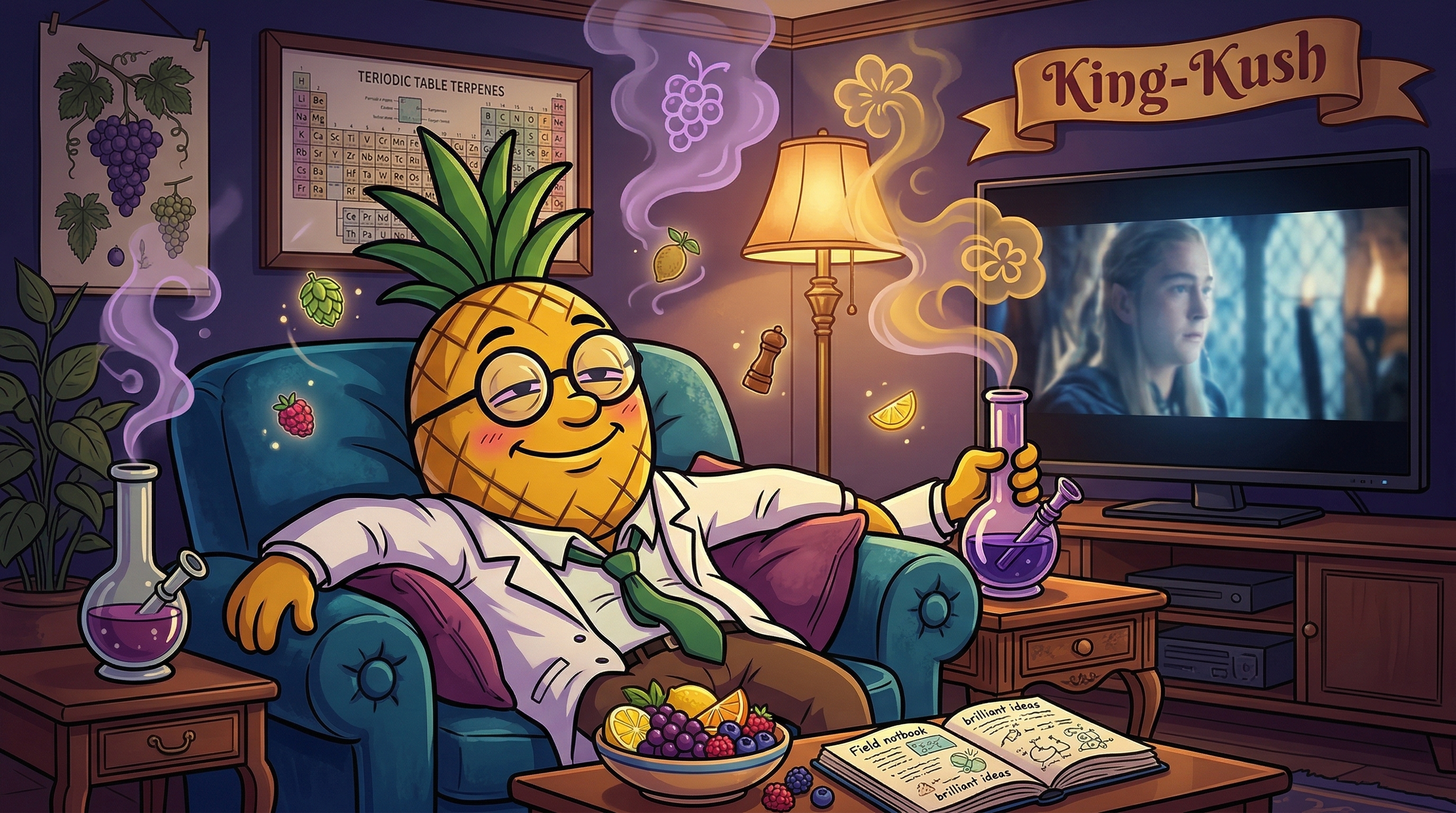 Okay, so... wow. The first thing I notice after exhaling is this warm, golden heaviness settling into my shoulders — like someone draped a weighted blanket made of pure contentment across my entire body. My mind is doing this really interesting thing where it's simultaneously sharp and soft — I can think clearly, there's actual euphoria lifting my mood, but there's no urgency to any of it. It's like the limonene is keeping me from sinking completely while the myrcene is saying, "hey, you can let go now." The grape sweetness is still coating my throat in the best way. I'm noticing my jaw unclenching, my breathing has slowed and deepened. There's a gentle creativity bubbling up — not the racing kind, more like everything feels meaningful and interesting. About twenty minutes in, the caryophyllene is doing its work on the muscles — any tension I was holding is simply... gone. King Kush earns its name. This is the kind of high that makes you appreciate stillness.