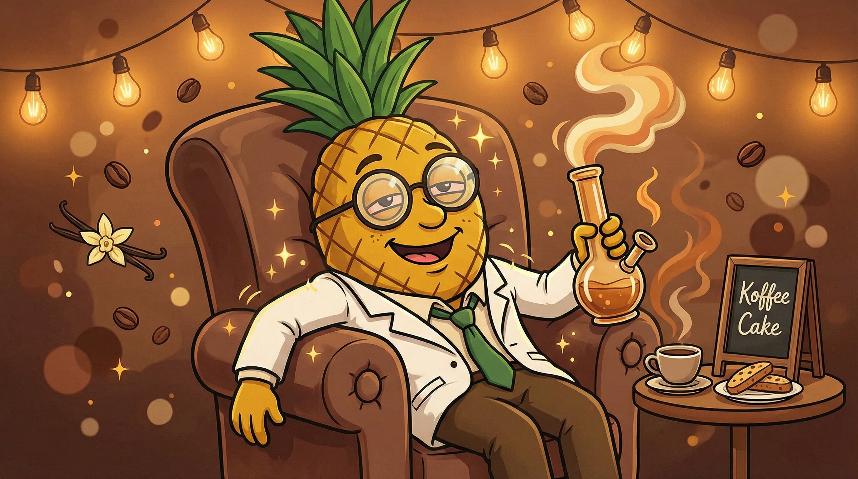 Whoa... so I just finished a bowl of Koffee Cake and I'm sinking into my chair like it's made of clouds. The first thing that hit me was this incredible coffee shop aroma—like someone just ground fresh espresso beans mixed with vanilla syrup. About five minutes in, I felt this warm wave of euphoria wash over my mind, making everything seem a bit brighter, more interesting. My thoughts are flowing smoothly, creatively even, but without any anxious edge. Now, fifteen minutes later, the body effects are absolutely taking over. My shoulders—which I didn't even realize were tense—have completely melted. There's this tingly, heavy sensation spreading from my core out to my fingertips and toes, like warm honey flowing through my limbs. I'm definitely experiencing that classic indica body lock, but it's not uncomfortable—it's more like being wrapped in the world's coziest blanket. My eyelids are getting heavy, and I'm feeling wonderfully sedated but still mentally present enough to appreciate how relaxed I am. The munchies are real—I'm suddenly craving something sweet to complement these coffee flavors I'm still tasting. This is absolutely a nighttime strain; I can already tell I'll be sleeping like a baby in a couple hours.