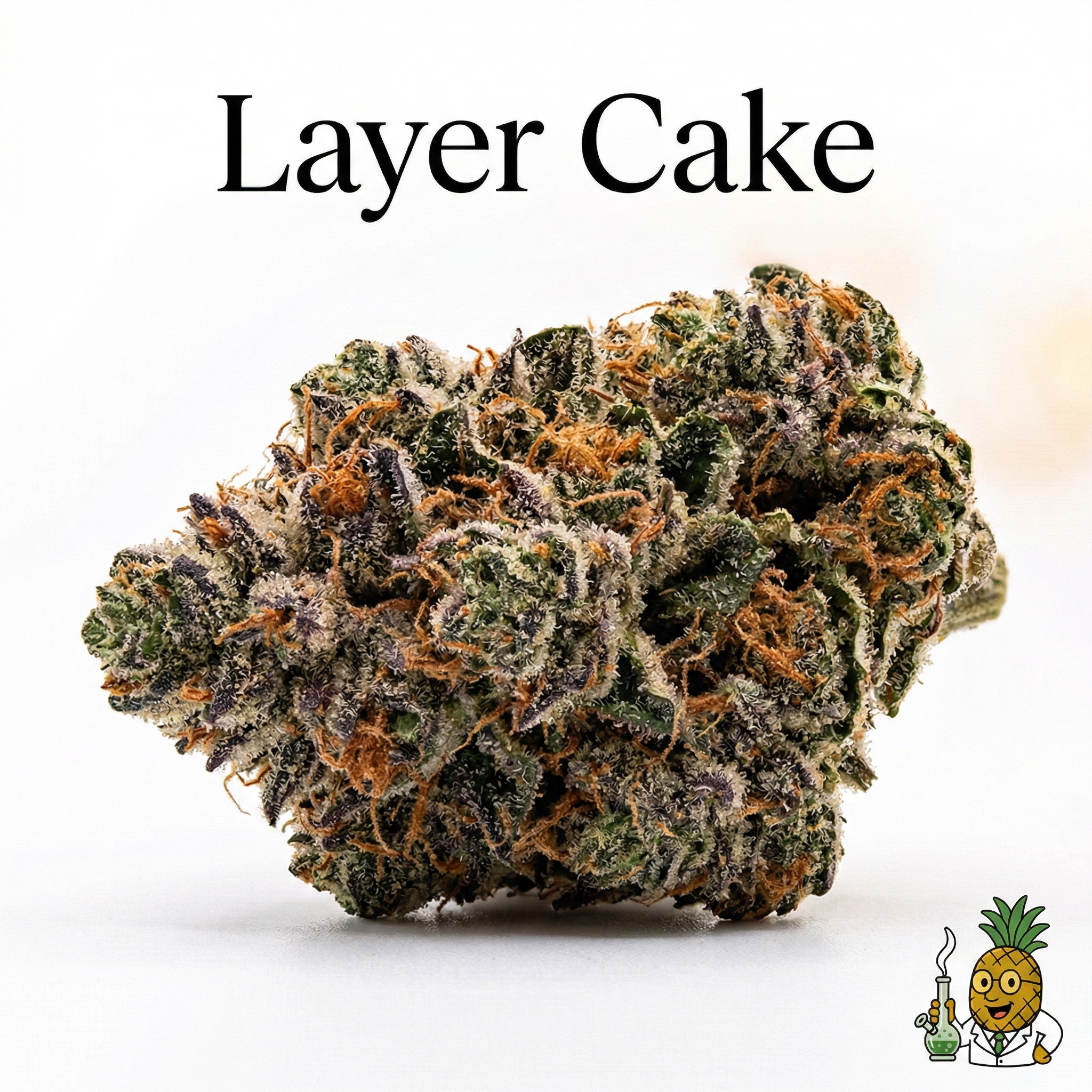 Layer Cake is a hybrid strain created by crossing Wedding Cake with GMO (Garlic Cookies), known for its balanced indica-dominant properties and complex terpene profile.