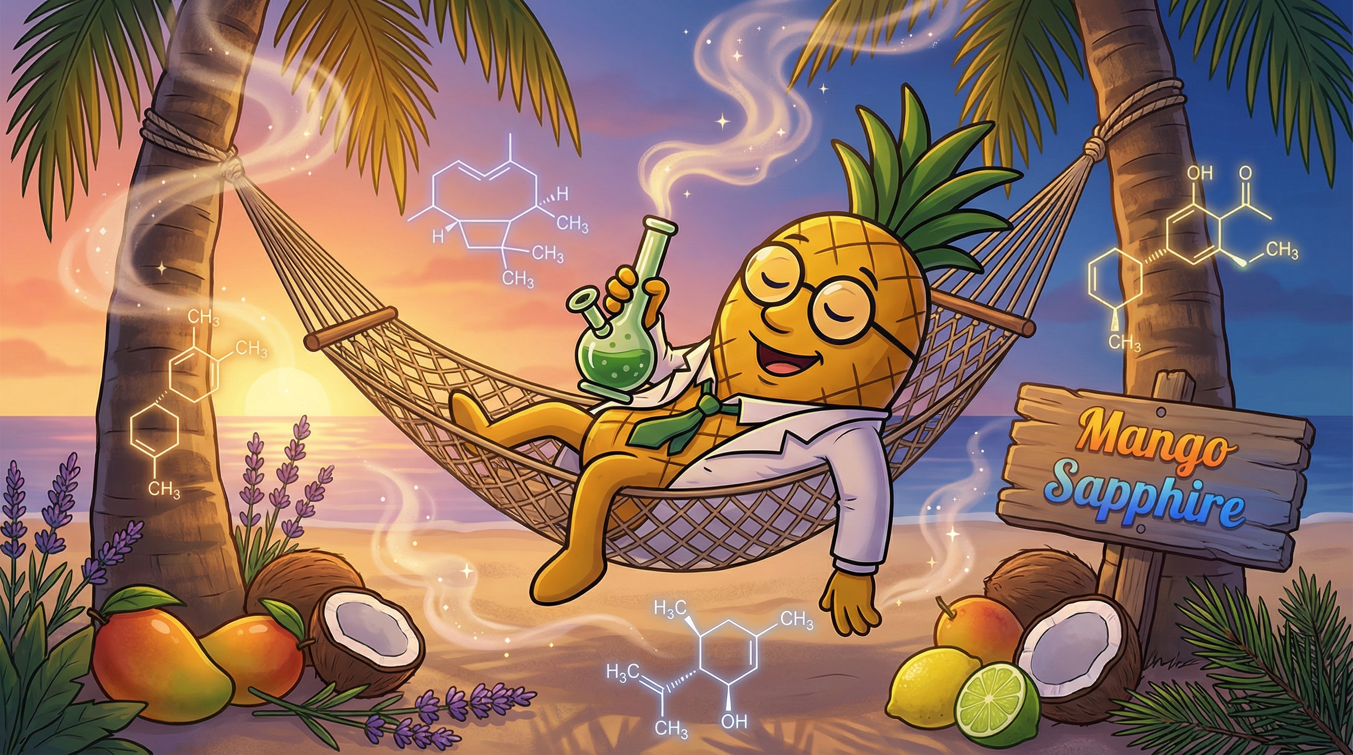 The moment I exhaled my first hit of Mango Sapphire, I felt this warm wave of tropical bliss washing through my consciousness—like my neurons were suddenly vacationing on a Caribbean beach. The Limonene and Linalool are doing this fascinating dance in my brain, where I'm experiencing simultaneously uplifted mental clarity and deeply soothing body relaxation. It's this beautiful contradiction that makes perfect sense when you're experiencing it.