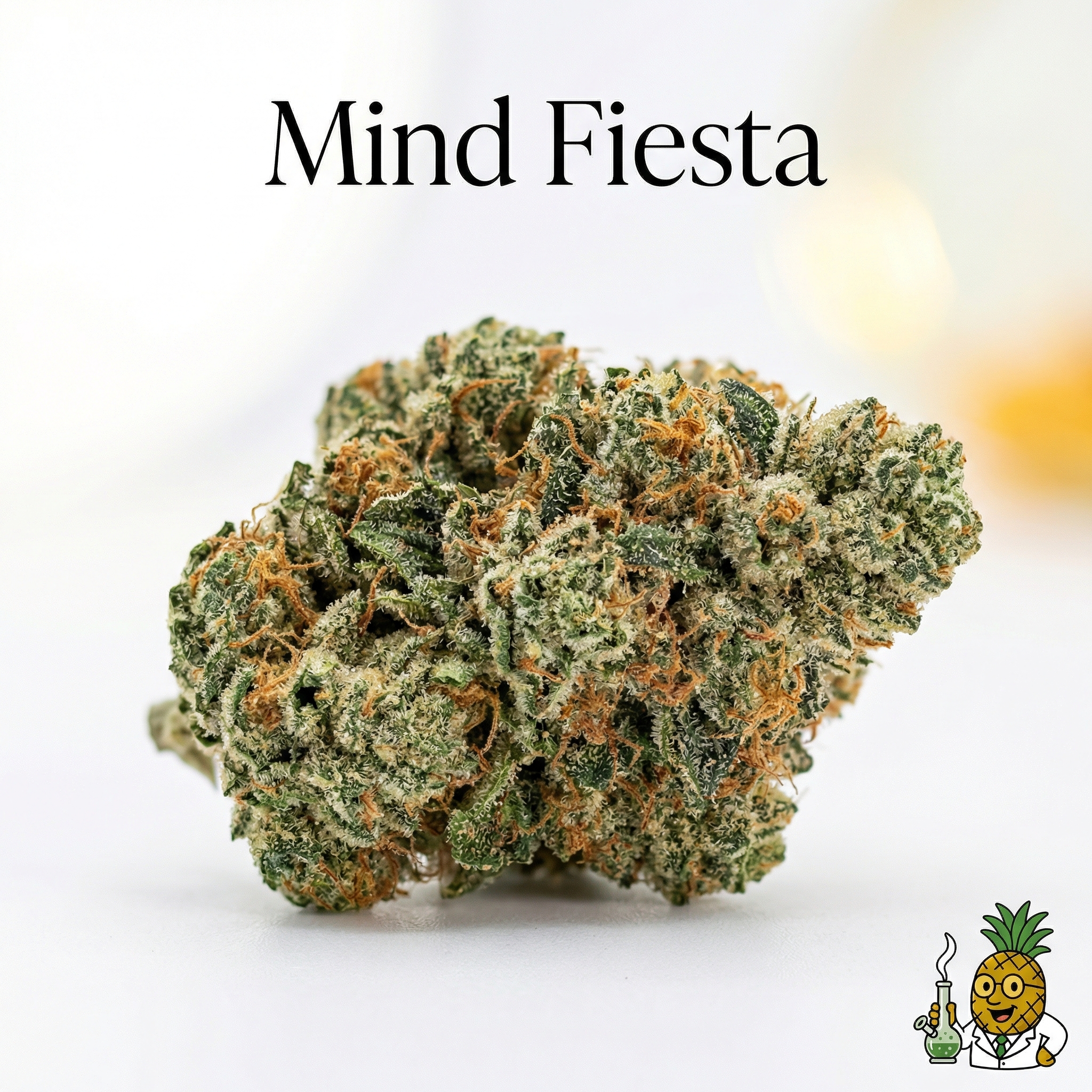 Mind Fiesta buds typically display medium to dense structure with a generous coating of amber and golden trichomes that shimmer under light. Expect to see forest green base colors accented by vibrant orange pistils that twist throughout the flower. Some phenotypes show purple undertones when properly cured, creating a visually striking appearance that matches the strain's festive name.