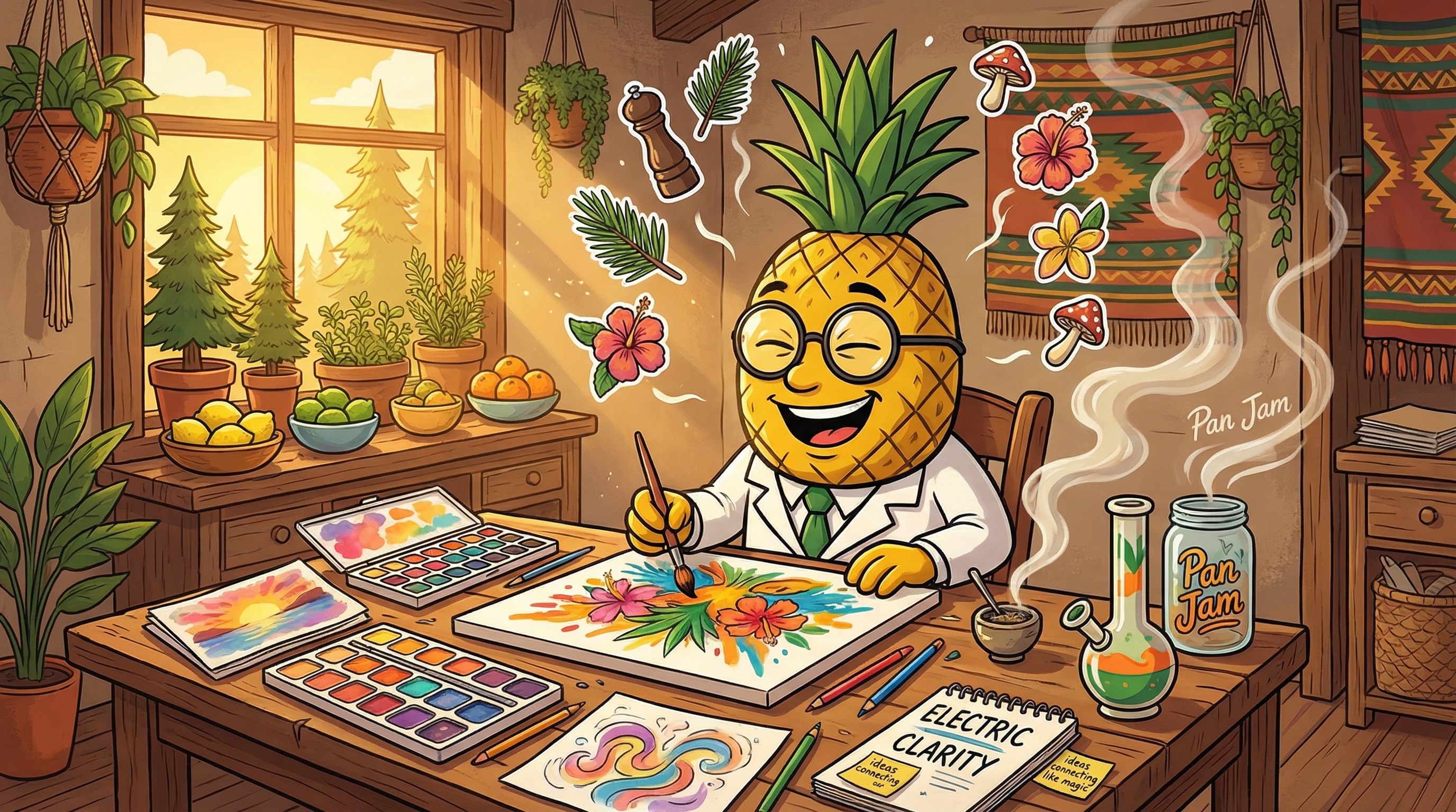 The moment Pan Jam hits, I feel this electric clarity washing over my frontal cortex—like someone just opened all the windows in a stuffy room and let the Caribbean breeze rush in. My thoughts start dancing rather than walking, each idea connecting to the next with this beautiful, effortless flow that makes creative work feel like play. There's this dual-channel experience happening: my mind is soaring, making connections I'd never normally see, while my body settles into this warm, comfortable embrace that's relaxed without being sedating. The euphoria builds in waves, and I find myself grinning at nothing in particular, just genuinely happy to be conscious and experiencing this moment. What fascinates me most is how the psychedelic edge inherited from those Panama Red genetics manifests—colors seem more saturated, music has additional layers I've never noticed, and conversations take on this profound quality where every word feels meaningful. It's the kind of high that makes you want to create something, connect with someone, or explore an idea rather than melt into the couch. The body relief is definitely present—I can feel tension releasing from my shoulders and lower back—but it's supportive rather than dominant, like a gentle foundation beneath the mental fireworks. This is cannabis as a tool for enhanced living rather than escape, and that's what makes Pan Jam so special.