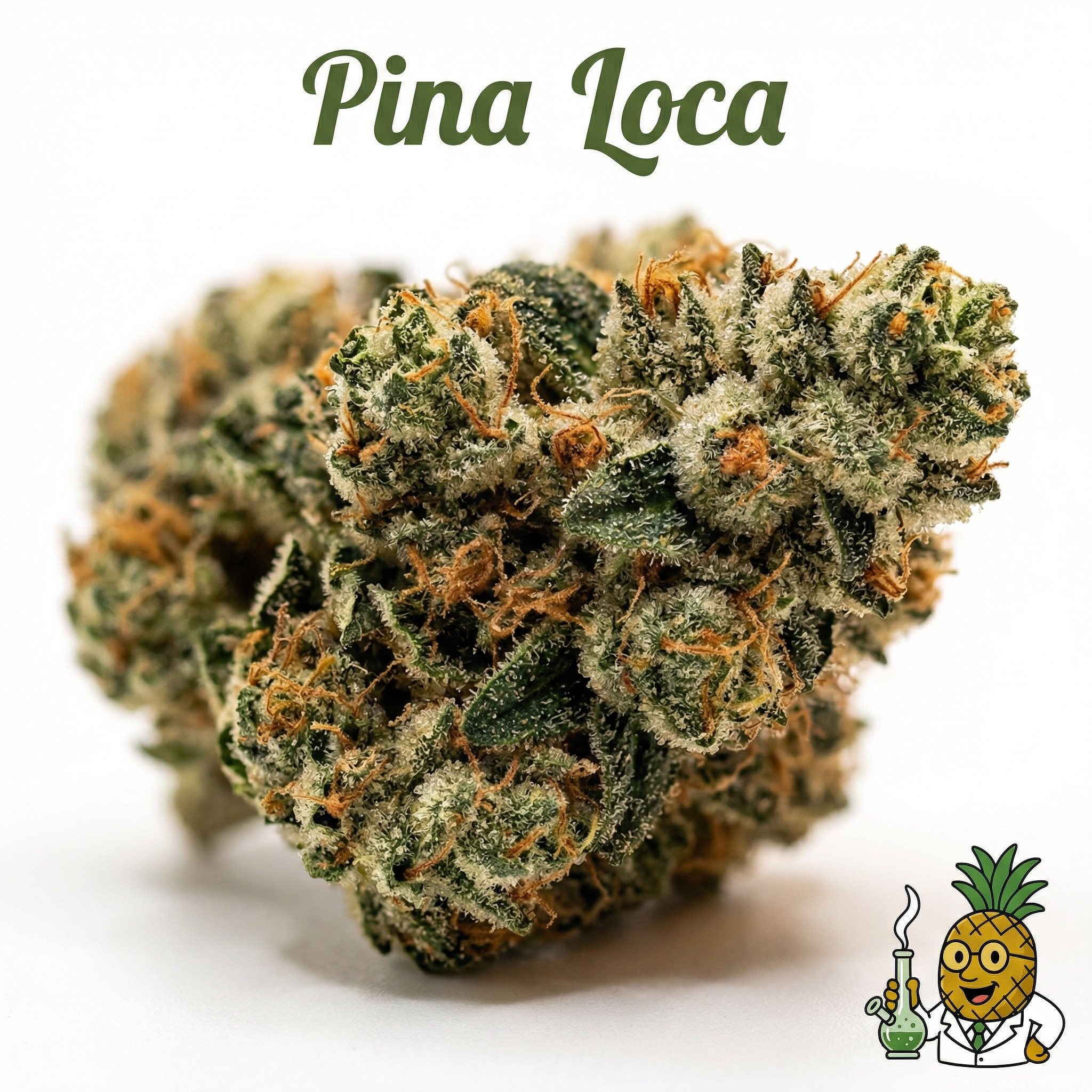 Pina Loca is a hybrid strain with genetics traced to Pineapple Tart and Creamsicle #4 according to The Flowery, or Oregon Pineapple and Jet Fuel Gelato according to AllBud. Indica-dominant hybrid.
