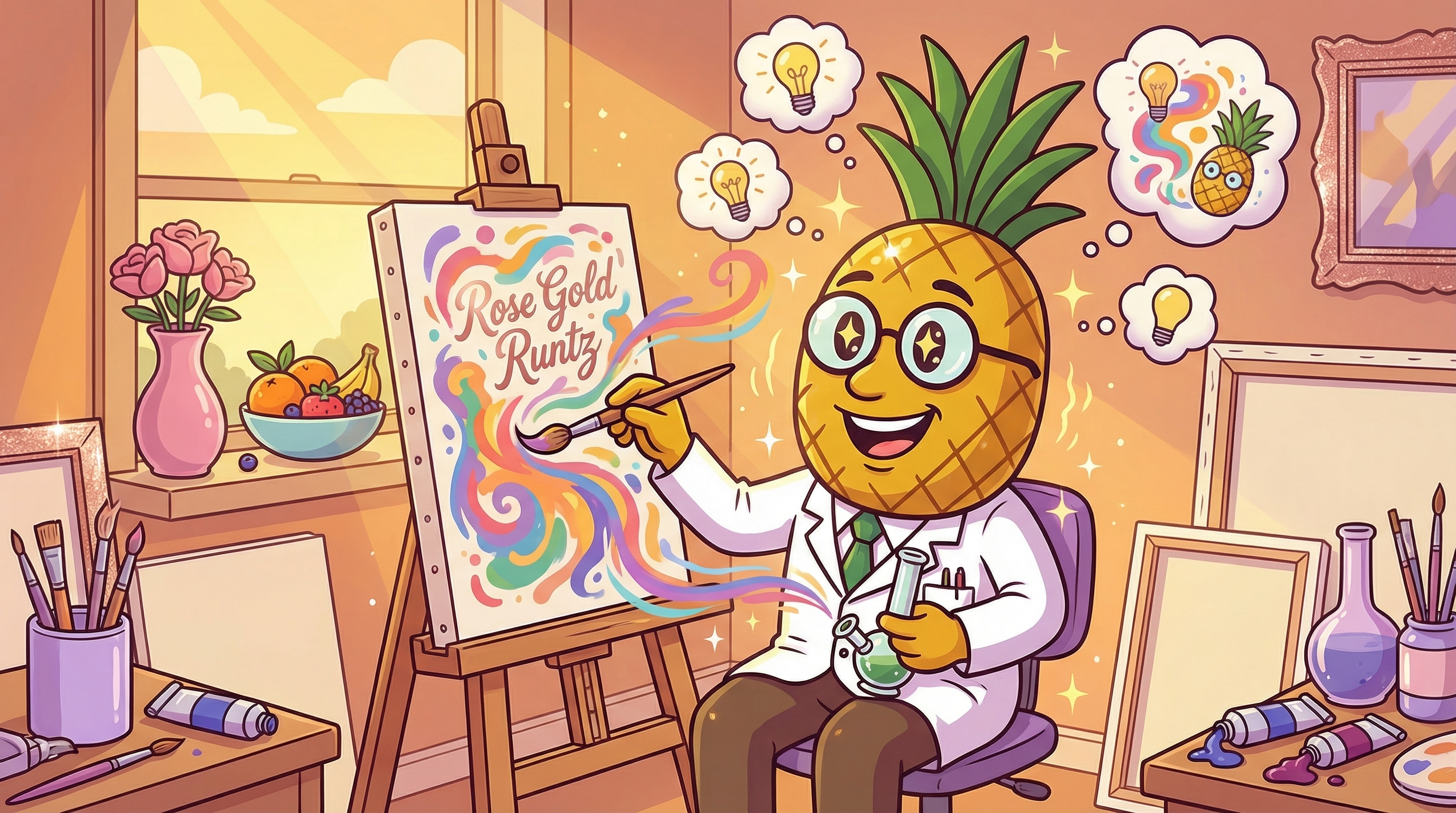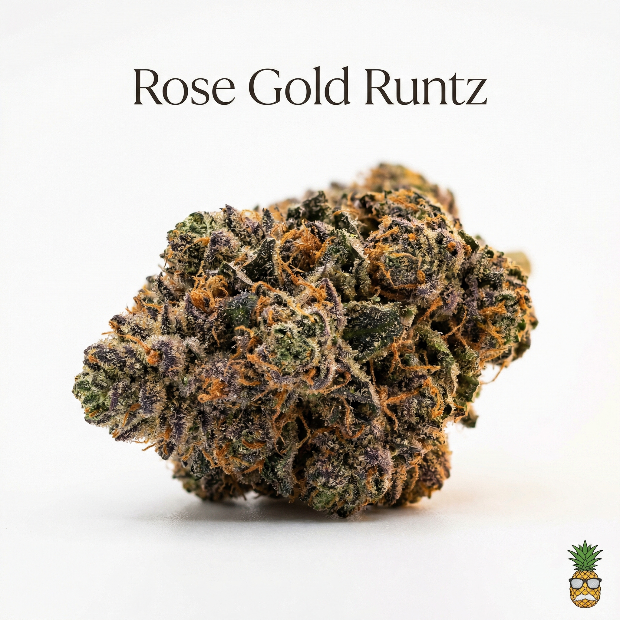 Rose Gold Runtz is a balanced 50/50 hybrid cross between Apples & Bananas and White Runtz, created by Compound Genetics and distributed by RYTHM.