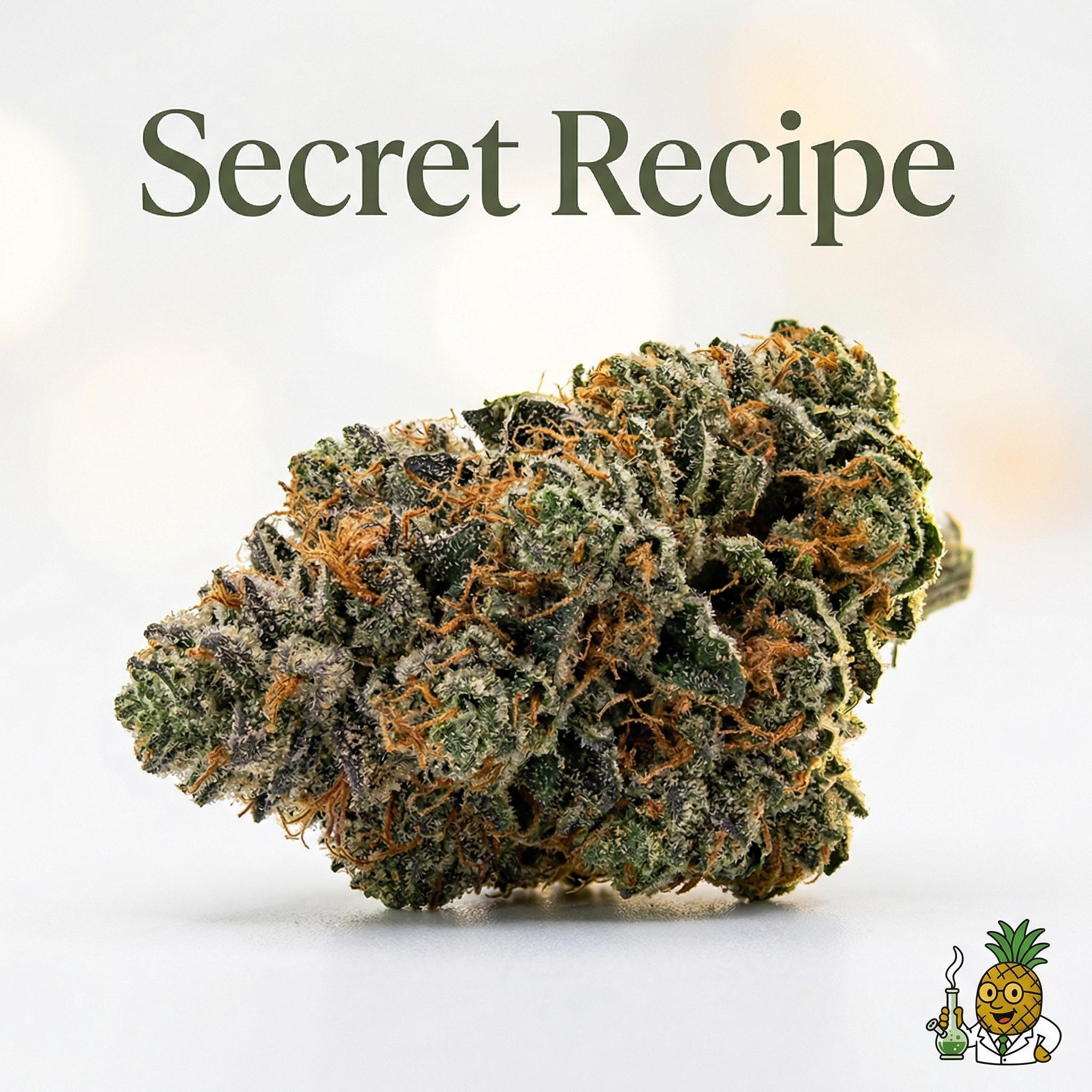 Secret Recipe is a hybrid strain with complex lineage involving Chemdawg, Abusive OG, and Sour Diesel genetics. Multiple breeders have contributed to different phenotypes, including Connoisseur Genetics and Exotic Genetix versions.