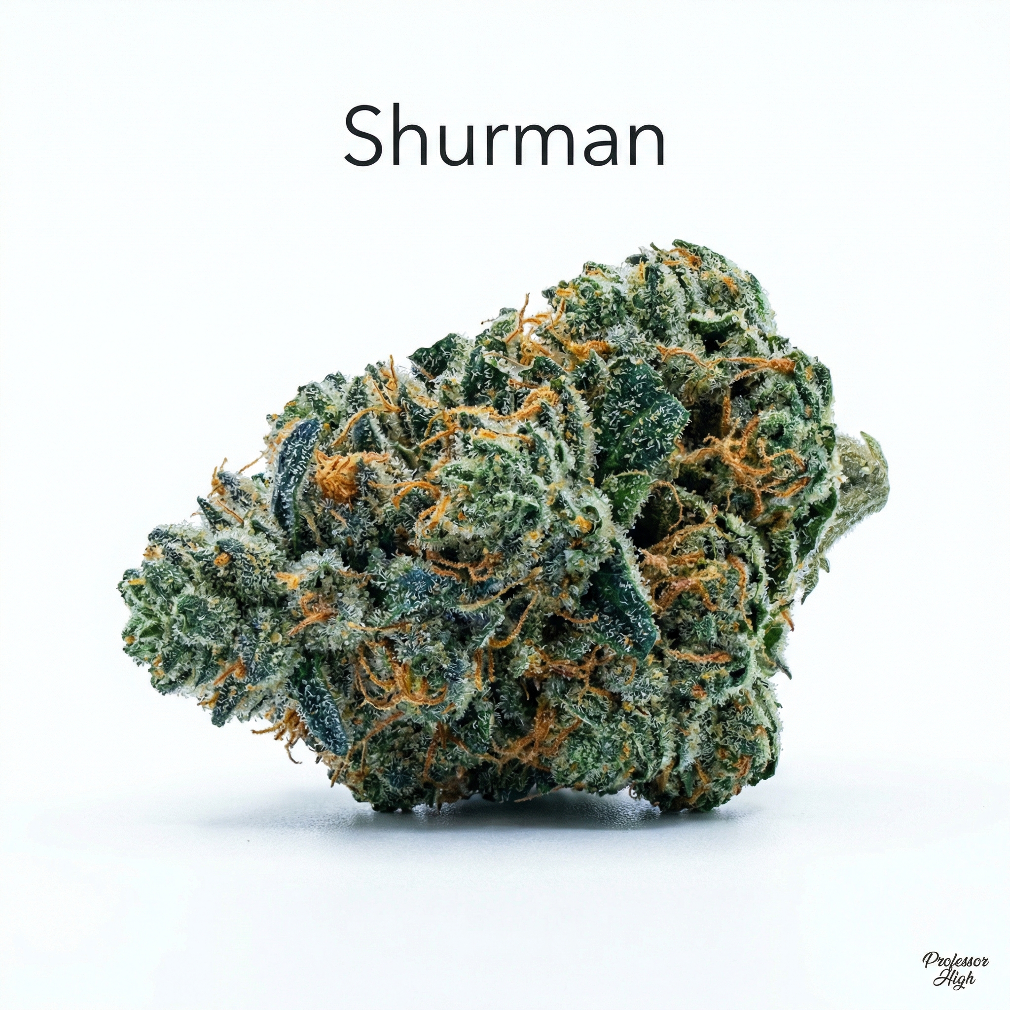 Shurman buds display medium to dense structure with generous trichome coverage that reflects The White's influence. Expect forest green hues with potential purple undertones, complemented by vibrant orange pistils throughout. The heavy crystallization gives buds a frosted appearance, indicating high cannabinoid content.