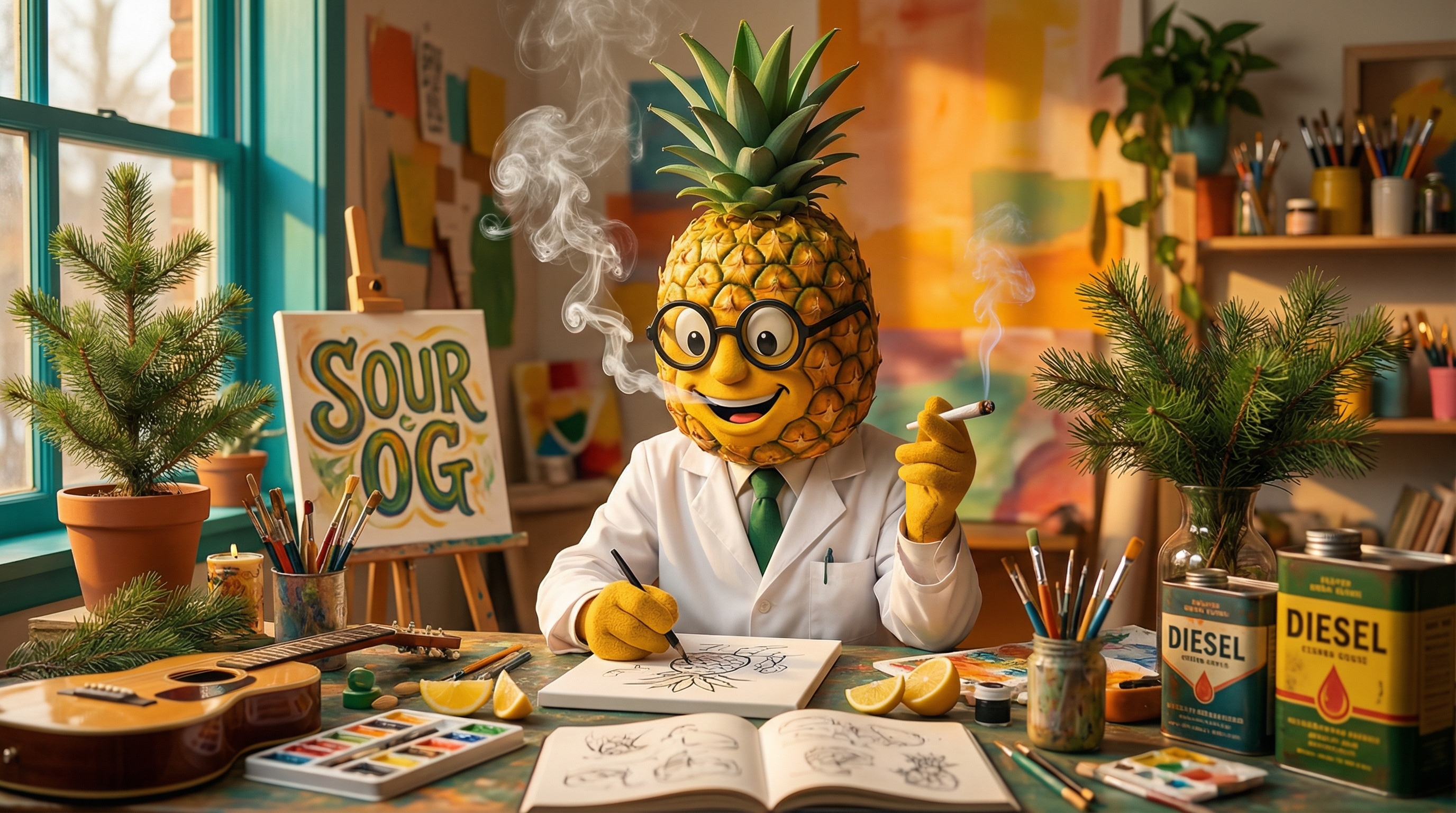 The onset hits like intellectual lightning wrapped in a warm blanket—my mind immediately sharpens while tension I didn't know I was carrying just... dissolves. There's this fascinating dual-channel experience happening: the Sour Diesel genetics are lighting up creative pathways, making connections between ideas feel effortless, while the OG Kush side is systematically relaxing every muscle from my neck downward.