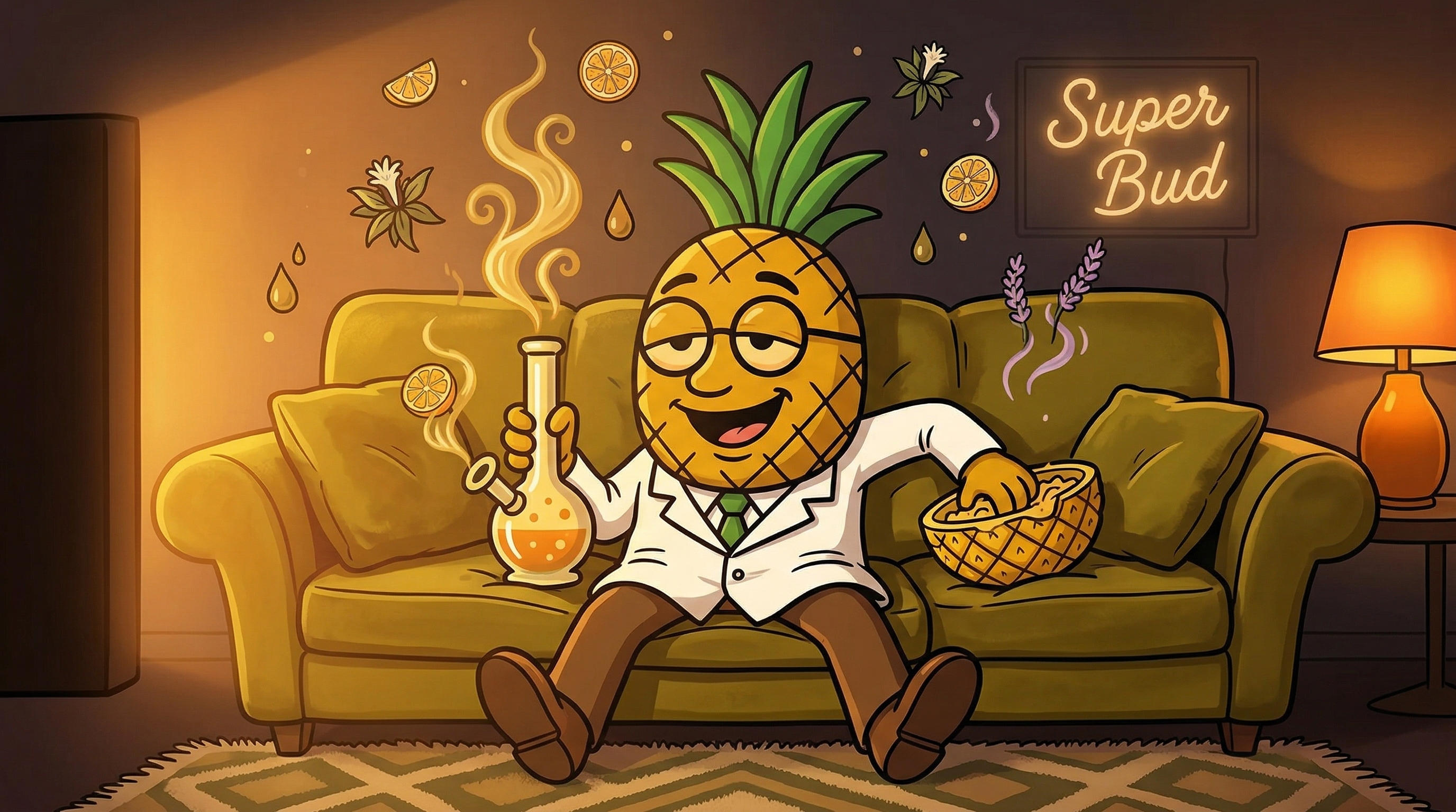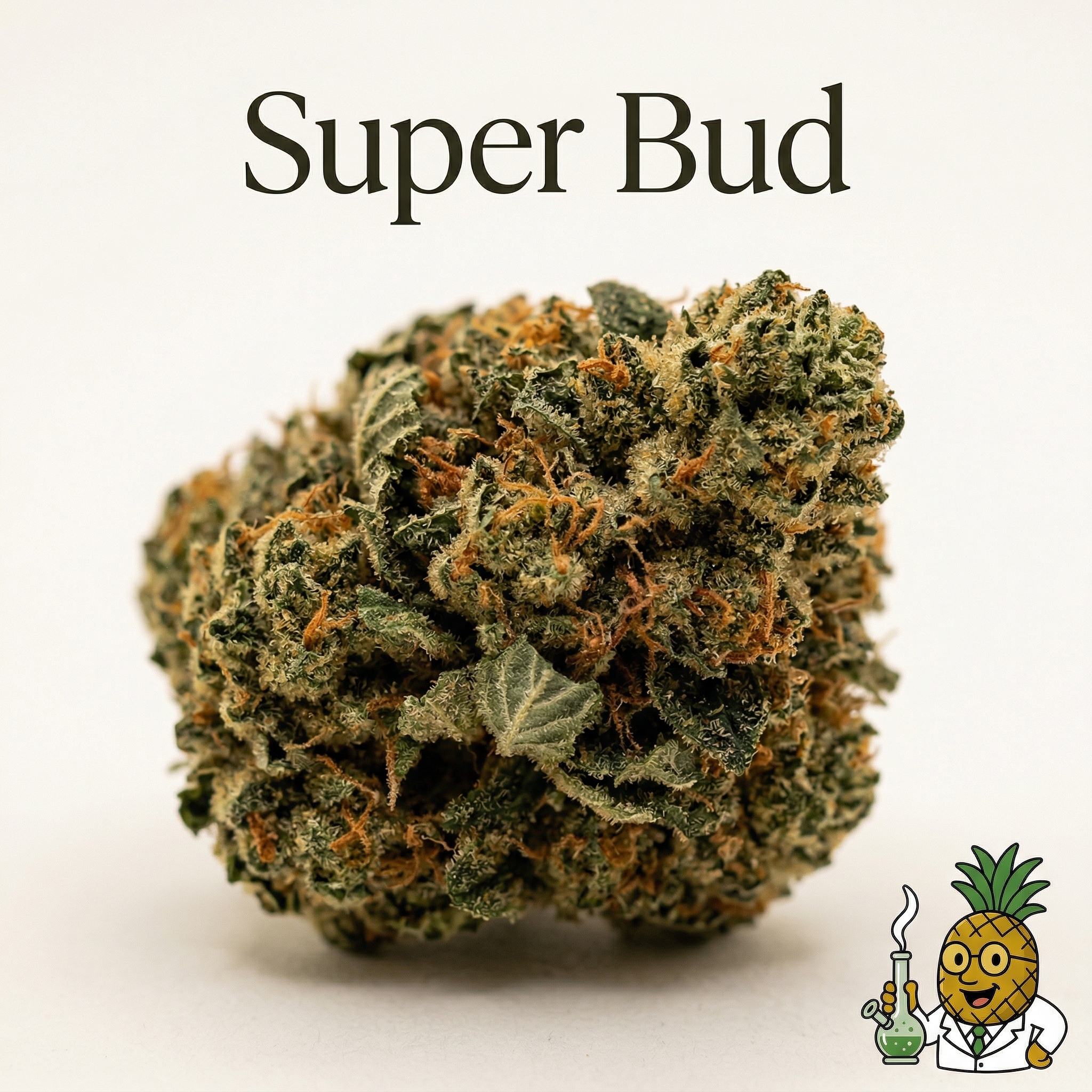 Super Bud (aka Ed Rosenthal Super Bud) is an 80/20 indica-dominant hybrid born from Big Bud and Skunk genetics. Expect a wave of happy, giggly euphoria that deepens into full-body relaxation and eventual sleepiness. With sweet citrus and pineapple flavors layered over earthy, skunky undertones, this classic strain is a go-to for evening stress relief, pain management, and insomnia support.