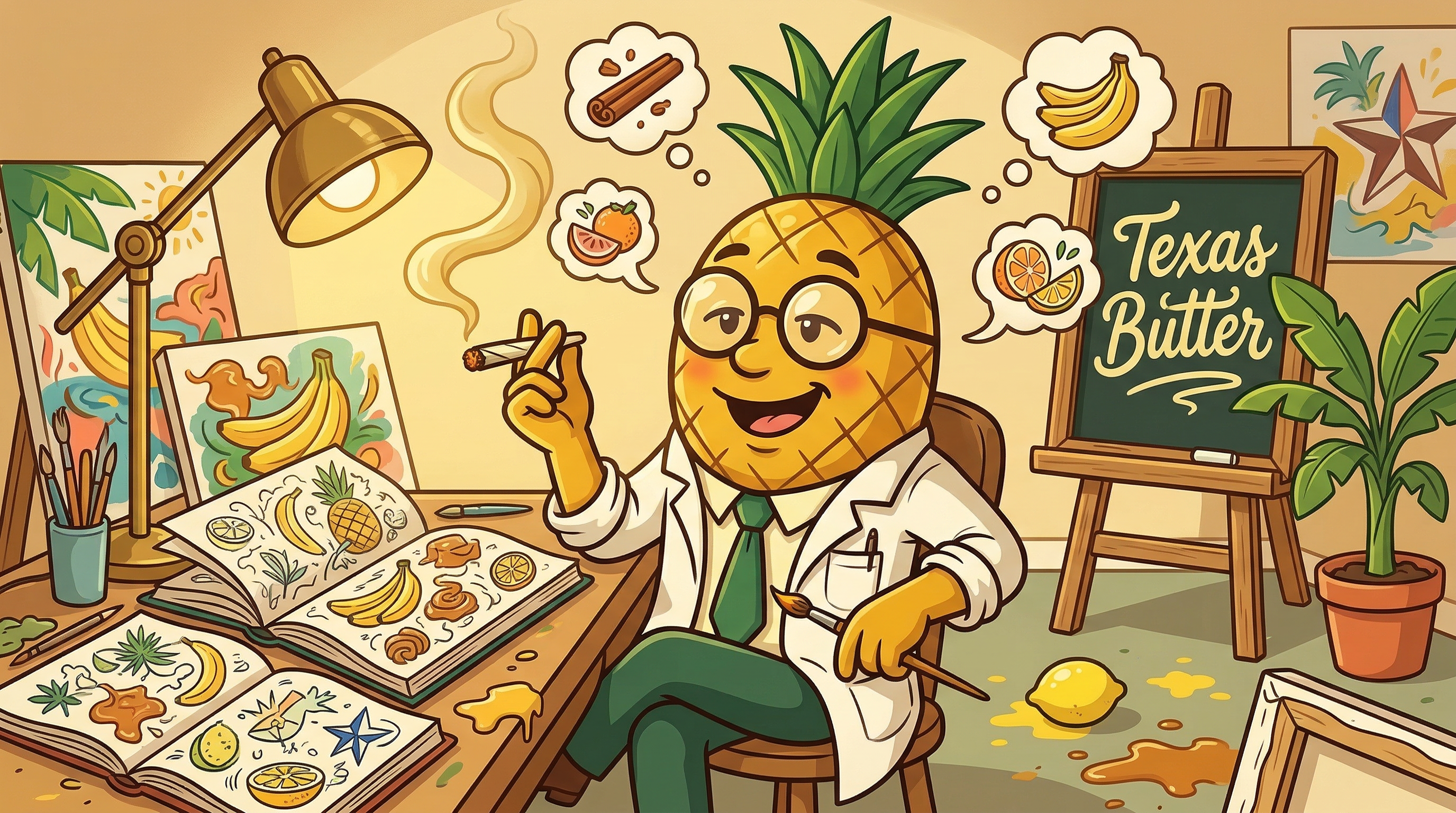 When you crack open a jar of Texas Butter, you'll be greeted by a complex aroma cascade: upfront sweet banana and tropical fruit give way to a dank, skunky earthiness inherited from Stardawg, with subtle citrus and diesel notes weaving through the background. Some phenotypes lean more buttery and creamy, while others express a sharper, more fuel-forward edge.
