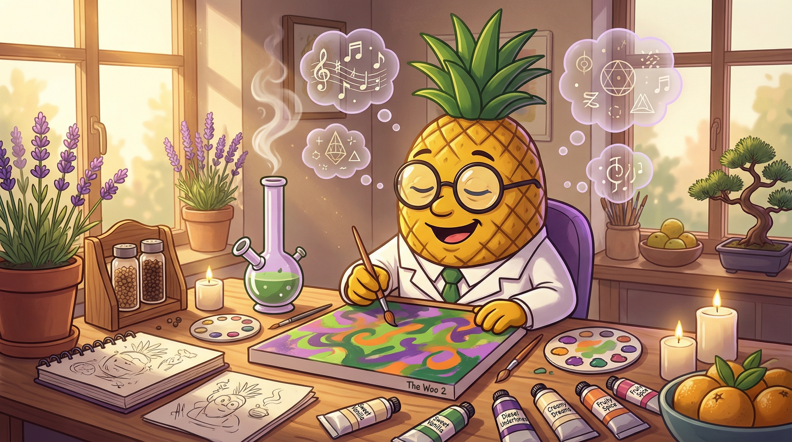 Whoa, okay, so I just sparked up The Woo 2 and I'm immediately noticing this fascinating interplay between cerebral stimulation and physical ease*. The Linalool dominance is creating this almost lavender-like calm washing over my mind—like someone just dimmed the anxiety dial from 8 to 3 within minutes. But here's what's really interesting: unlike pure Indica relaxation, I'm simultaneously feeling this creative energy surge that I attribute to the Limonene and that Sativa-leaning genetic expression. My thoughts aren't racing; they're flowing—there's a difference. It's like the terpene synergy is creating this sweet spot where I'm relaxed enough to let ideas emerge naturally but energized enough to actually capture them. The body high is settling into my shoulders and neck now, about 15 minutes in, and I'm experiencing this tension release that feels almost therapeutic. The Caryophyllene must be activating those CB2 receptors because there's this subtle anti-inflammatory sensation happening. What's remarkable is how functional I remain—this isn't couch-lock territory at all. I could absolutely write, have a meaningful conversation, or work on a creative project right now. The euphoria is real but grounded, happy but not manic. This is what balanced hybrid genetics should feel like.