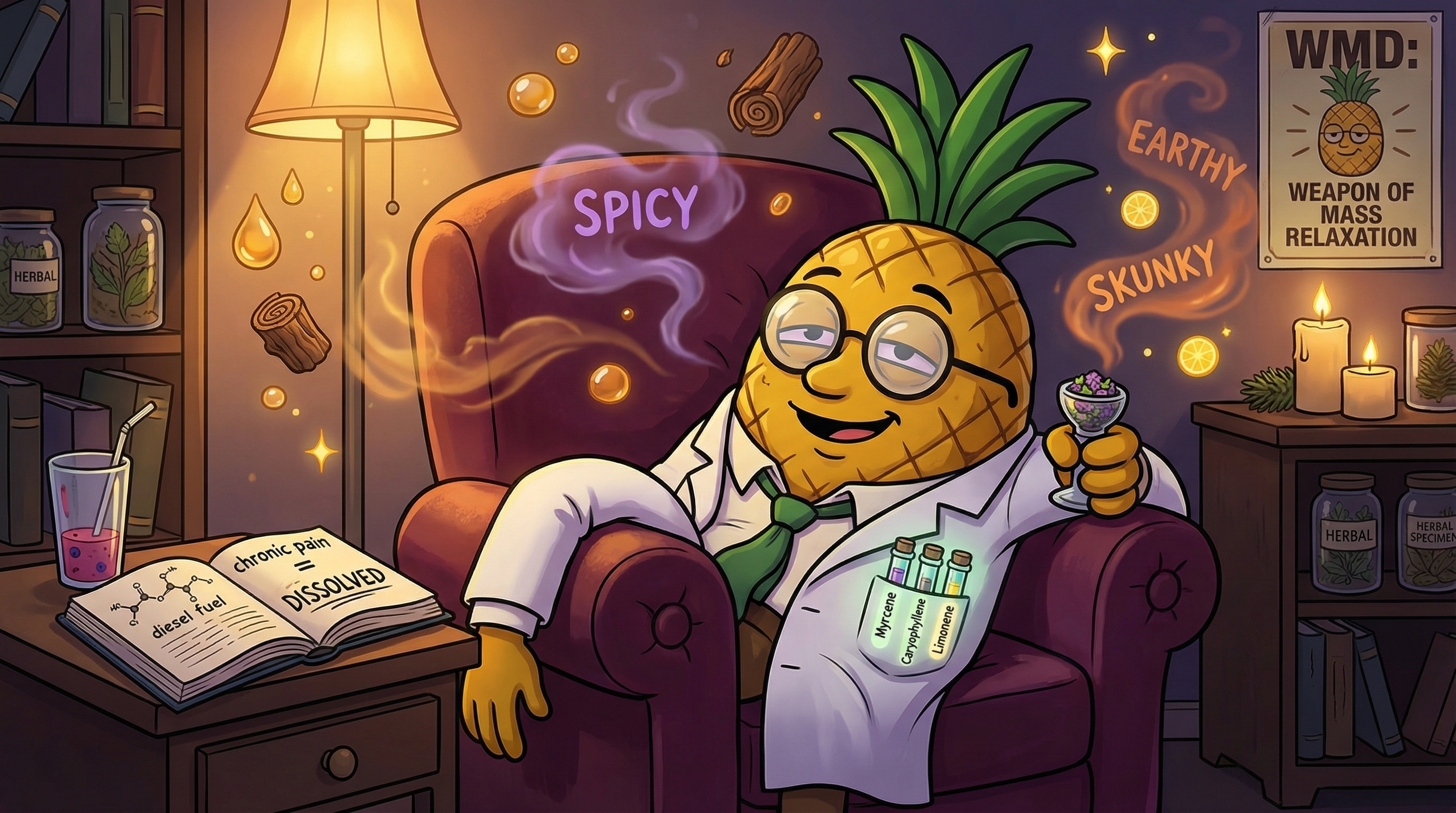 Myrcene dominates WMD's terpene profile at approximately 0.55%, contributing heavily to the strain's sedating body effects and earthy foundation. This herbal, musky terpene is the cornerstone of WMD's relaxing properties and works synergistically with THC to enhance physical relief.