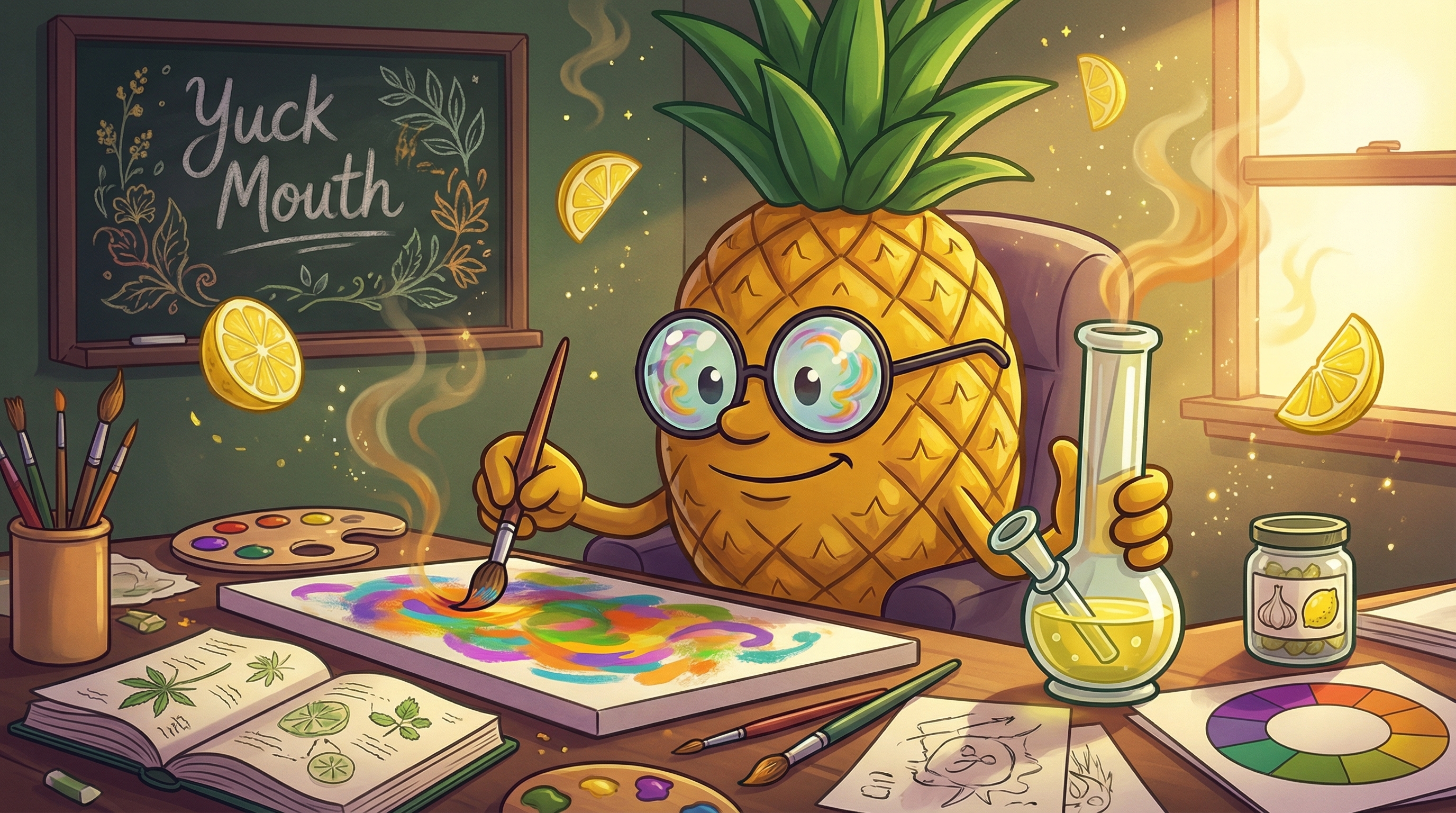 Okay, so I just sparked up some Yuck Mouth, and wow—the first thing that hits is this intensely funky wave washing over my frontal lobe like someone just opened a jar of fermented garlic-lemon diesel fuel, but in the best possible way. Within about three minutes, I'm experiencing this brilliant cerebral lift that feels like my thoughts are suddenly organizing themselves into neat, colorful filing cabinets. It's fascinating from a neurochemical perspective—the Limonene is clearly doing its job on my mood receptors because I'm feeling genuinely euphoric and chatty, explaining the strain to my potted plant like it's my research assistant.