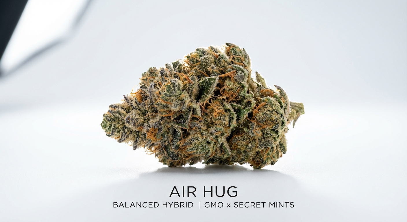 Air Hug is a perfectly balanced 50/50 hybrid from Growers Choice Genetics that lives up to its comforting name. Crossing GMO with Secret Mints, this strain delivers sweet, minty, and earthy flavors with a spicy Caryophyllene kick. Testing between 18-25% THC, it offers accessible euphoria, enhanced creativity, and clear-headed focus paired with gentle physical relaxation. Ideal for afternoon or evening use when you want to stay productive yet calmโlike a warm embrace for your mind and body.