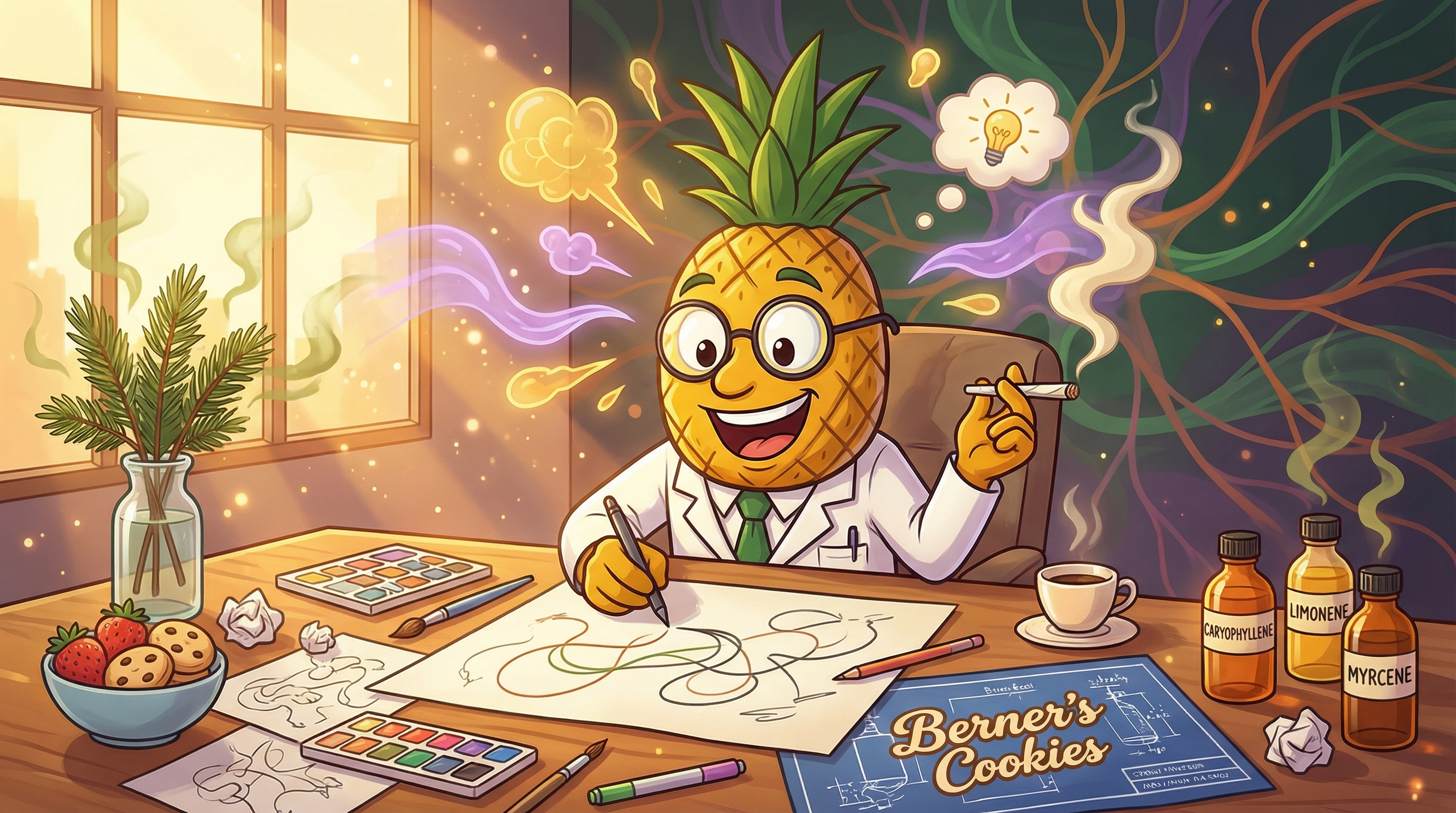 Berner's Cookies is an 80/20 sativa-dominant hybrid from legendary breeder Berner, descended from Girl Scout Cookies genetics. With 18-30% THC and a Caryophyllene-Limonene-Myrcene terpene profile, it delivers euphoric creativity, focused energy, and gentle body relaxation. The flavor profile features vanilla, sweet cookie dough, strawberry, and nutty notes that create a dessert-like experience. Perfect for creative projects, socializing, and stress relief while maintaining mental clarity and physical comfort.