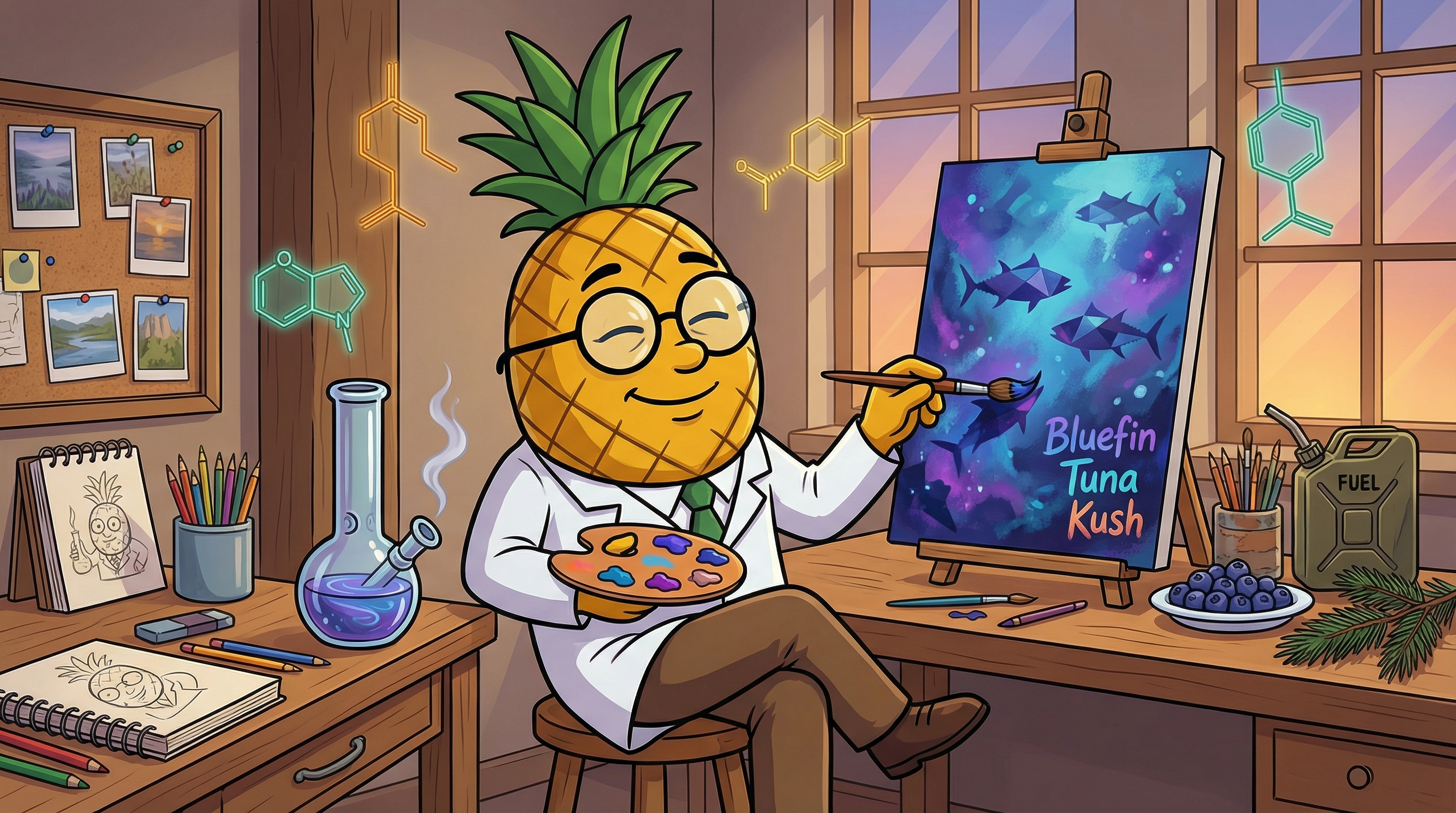 Taking a long exhale Okay, so here's what's happening right now—Bluefin Tuna Kush just activated the most interesting neural pathway between alertness and tranquility I've experienced in recent memory. About three minutes in, I felt this crystalline mental clarity wash over my frontal cortex, like someone turned up the brightness on my thoughts while simultaneously removing all the background static. My creative centers are firing beautifully—I'm making connections between concepts that seemed unrelated moments ago, that classic hybrid sweet spot where indica relaxation meets sativa inspiration.