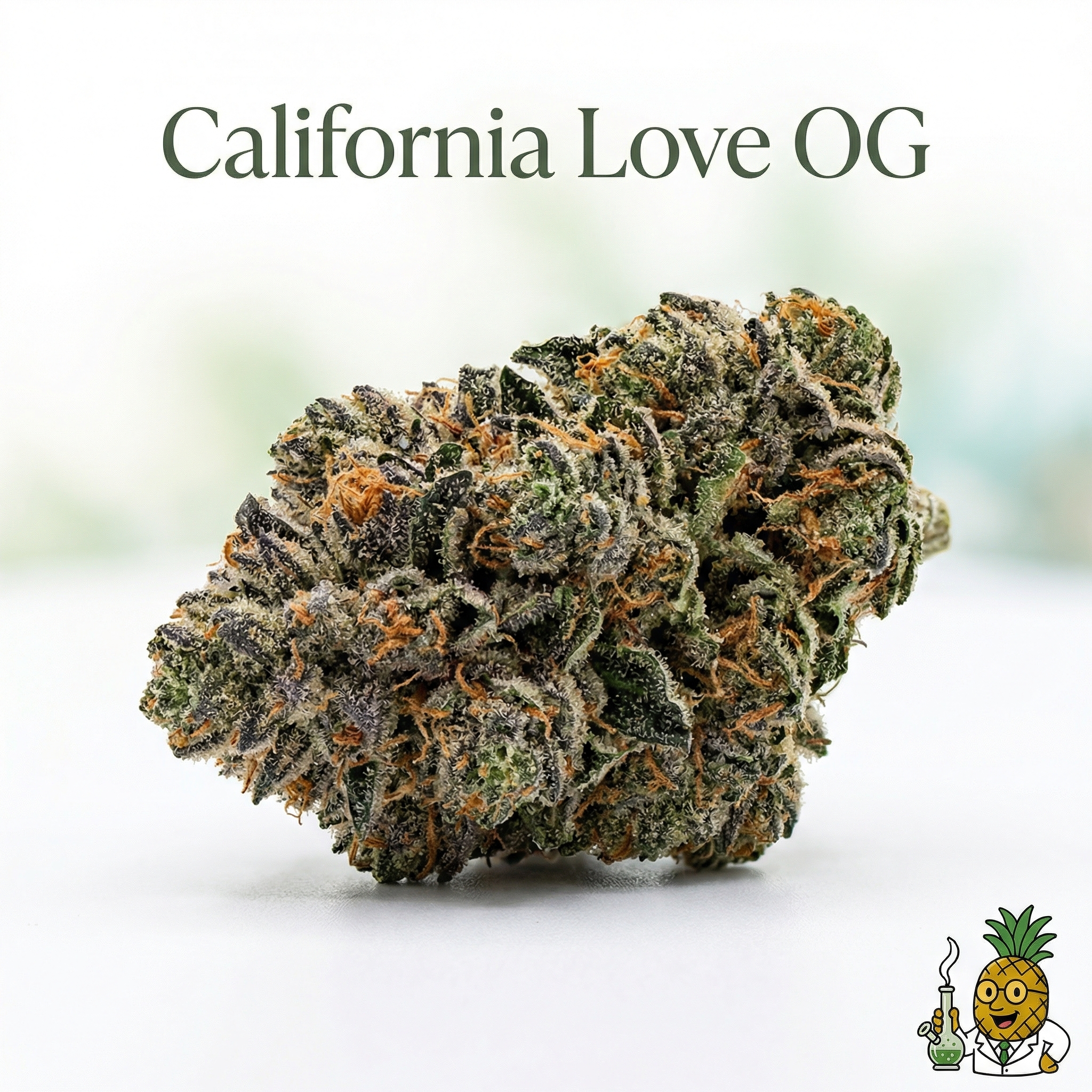 California Love OG is an indica-dominant hybrid from Spectrum Genetics (Coastal Haze ร Pie Face OG) that surprises with energizing, uplifting effects. Featuring unique Camphene and Terpinolene-dominant terpenes (1.01% total), it delivers tropical-pine aromas and complex citrus-nutty flavors. Despite indica genetics, expect creative focus, euphoric happiness, and functional energy perfect for daytime productivity. At 10-16% THC, it offers manageable potency for stress relief, mood elevation, and fatigue management without heavy sedation.