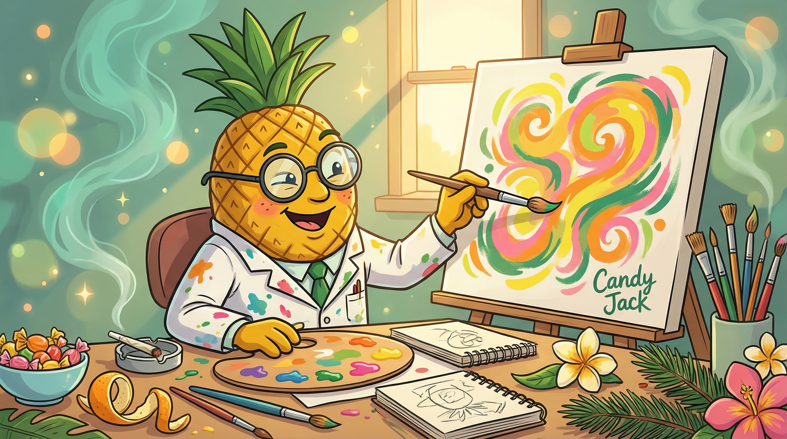 Candy Jack is a sativa-dominant hybrid cross between Jack Herer and Skunk #1, though some sources indicate crosses with Cotton Candy. Known for energetic and creative effects with citrus and sweet flavors.