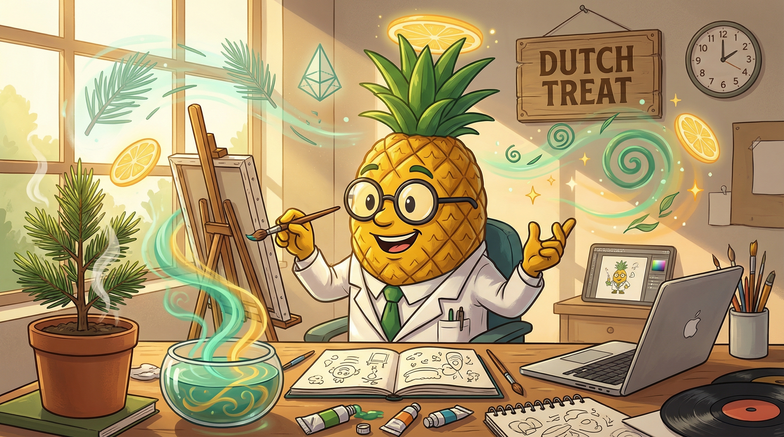The moment I exhale Dutch Treat, I'm riding this fascinating wave where my mind sharpens while my body softens—it's like someone turned up the brightness on my thoughts while simultaneously unwrapping the tension from my shoulders. That terpinolene-driven clarity hits first, and suddenly I'm connecting ideas I couldn't see five minutes ago, my creativity flowing like water finding new channels. But here's the beautiful paradox: as my neurons fire more efficiently, this gentle indica warmth spreads through my chest and limbs, not dragging me down but rather grounding me in the most pleasant way. The pine and citrus aromatics seem to open up my sinuses and my consciousness simultaneously. It's that rare combination where I feel energized yet peaceful, focused yet relaxed—like I could either dive deep into a creative project or have the most engaging conversation of the week, all while this comfortable body buzz keeps me from getting too wound up. The euphoria isn't overwhelming; it's more like someone gently lifted the weight of the day off my chest, and now everything just feels... possible. This is what balanced hybrid effects should be—functional bliss without compromise.