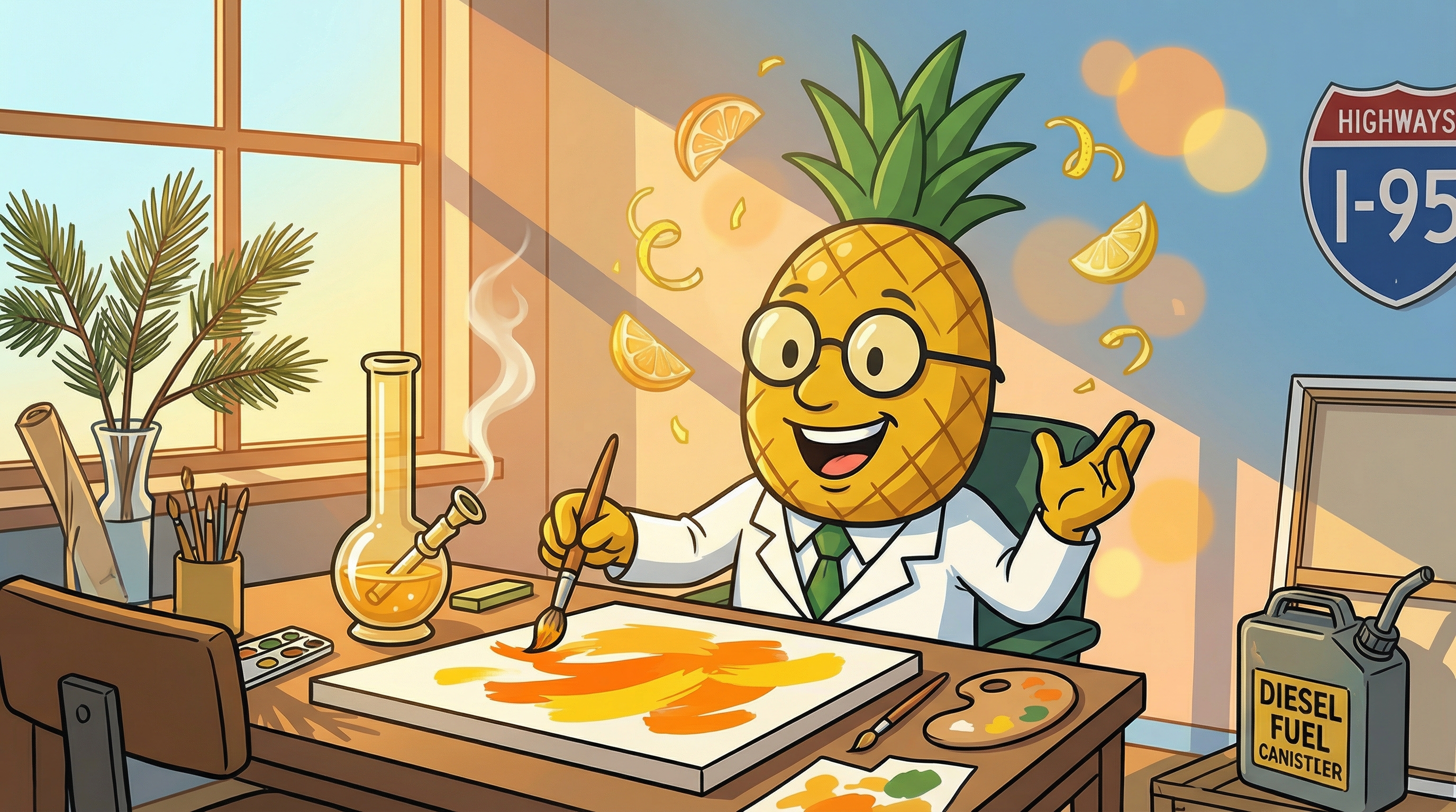The terpene profile of I-95 is dominated by limonene at 0.32%, which provides uplifting citrus notes and contributes to the strain's mood-enhancing properties. Following closely behind is caryophyllene at 0.24%, offering spicy, peppery undertones and potential anti-inflammatory benefits through CB2 receptor activation. Myrcene at 0.18% adds sedating body effects and earthy depth, while linalool (0.09%) and humulene (0.09%) contribute floral notes and additional anti-inflammatory properties. Pinene at 0.08% rounds out the profile with sharp pine aromas and alertness-promoting effects.