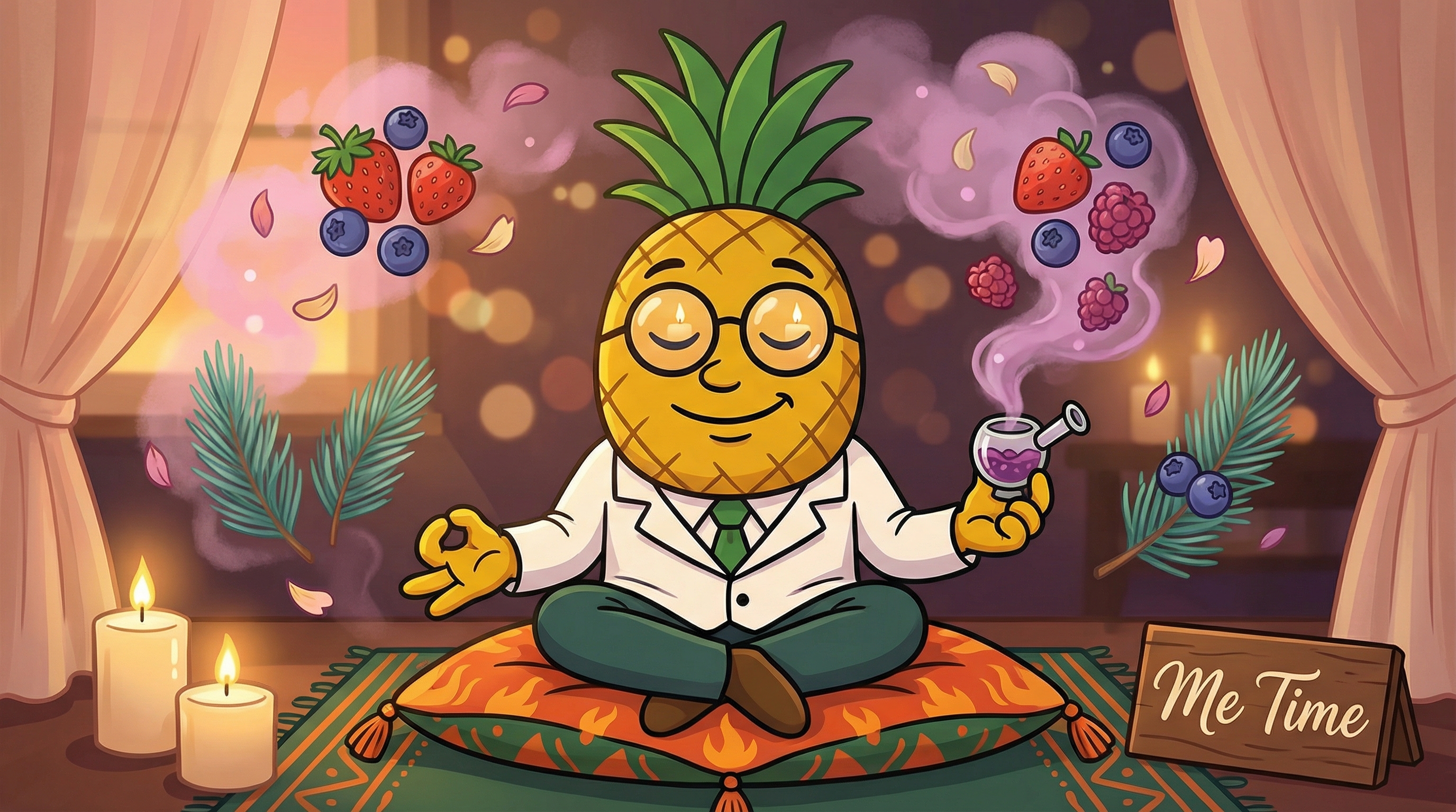 The flavor journey of Me Time is a delightful sensory experience. On the inhale, you'll immediately taste ripe strawberries and blueberries, creating a sweet berry medley that coats your palate. Mid-palate, floral vanilla notes emerge, reminiscent of cotton candy at the fair, with subtle earthy undertones that ground the sweetness. The exhale brings a lingering sweet floral finish with hints of wine-like complexity. Some users report a gentle soapy or clean quality that's surprisingly pleasant, while the pine and earthy notes provide depth and prevent the flavor from becoming cloying.