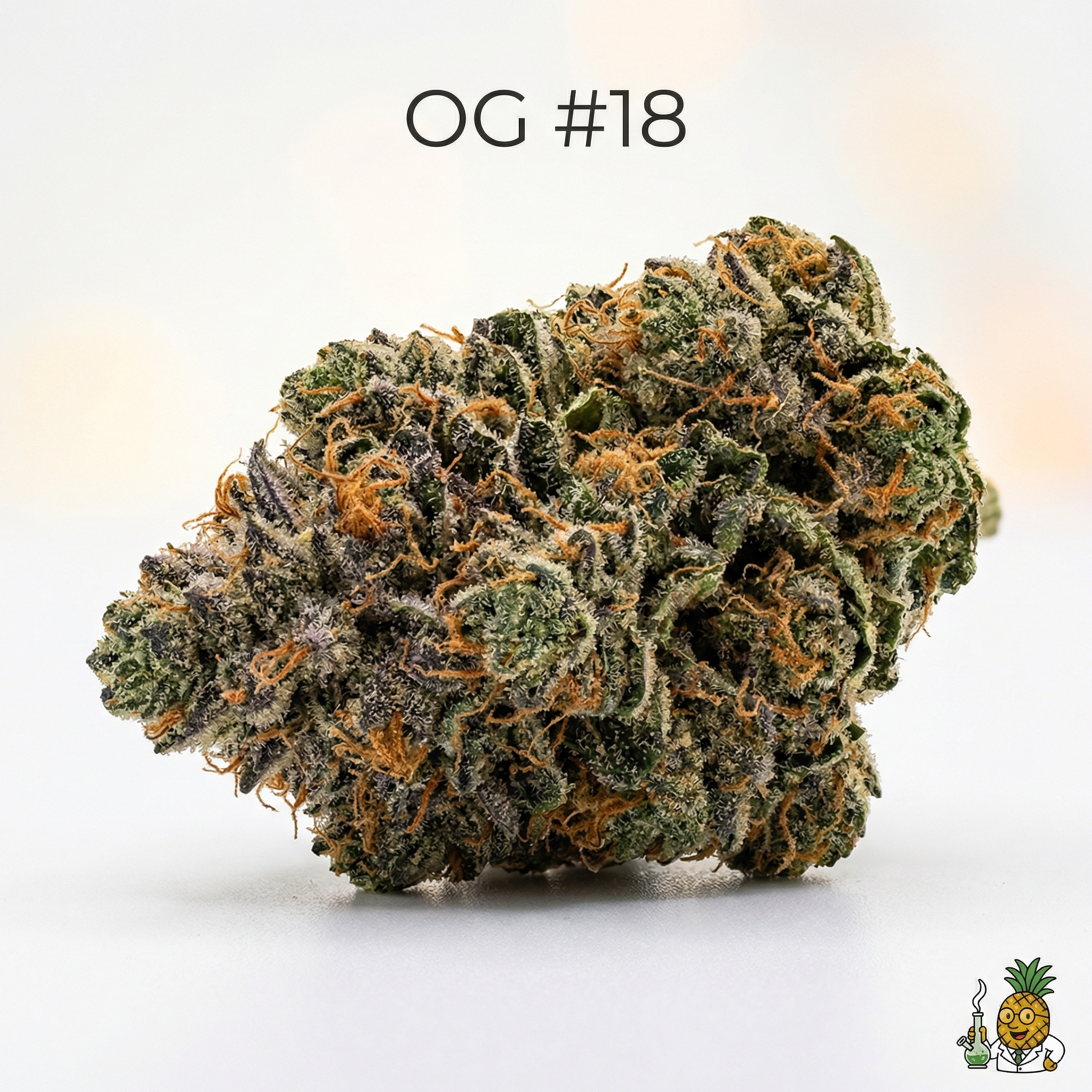 OG #18 is a hybrid strain primarily descended from OG Kush with various lineage reports including Afghani, Hindu Kush, and Lemon Thai genetics. Some sources indicate it originated in the 2000s.